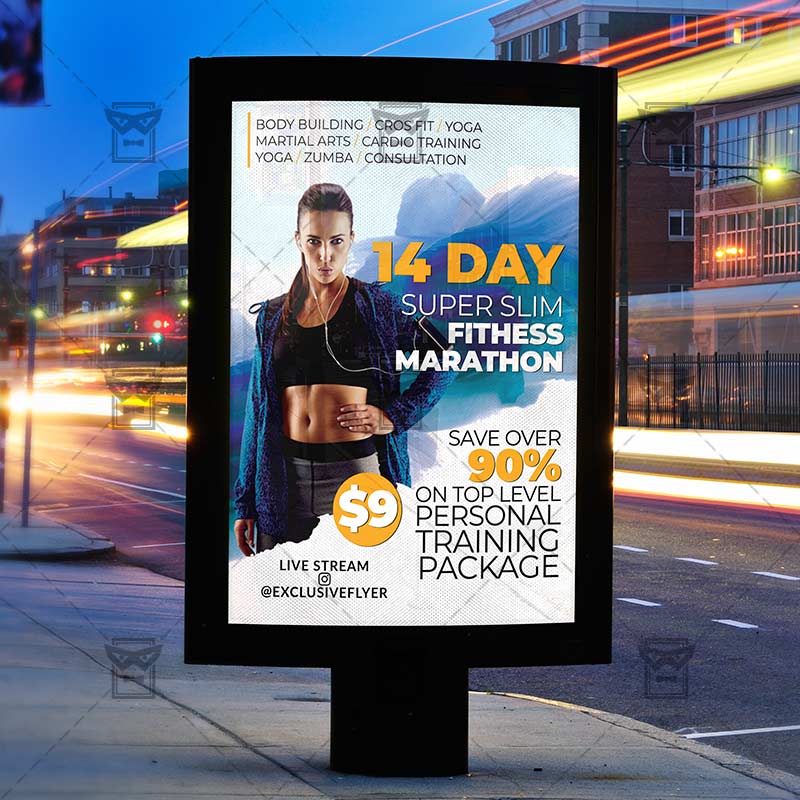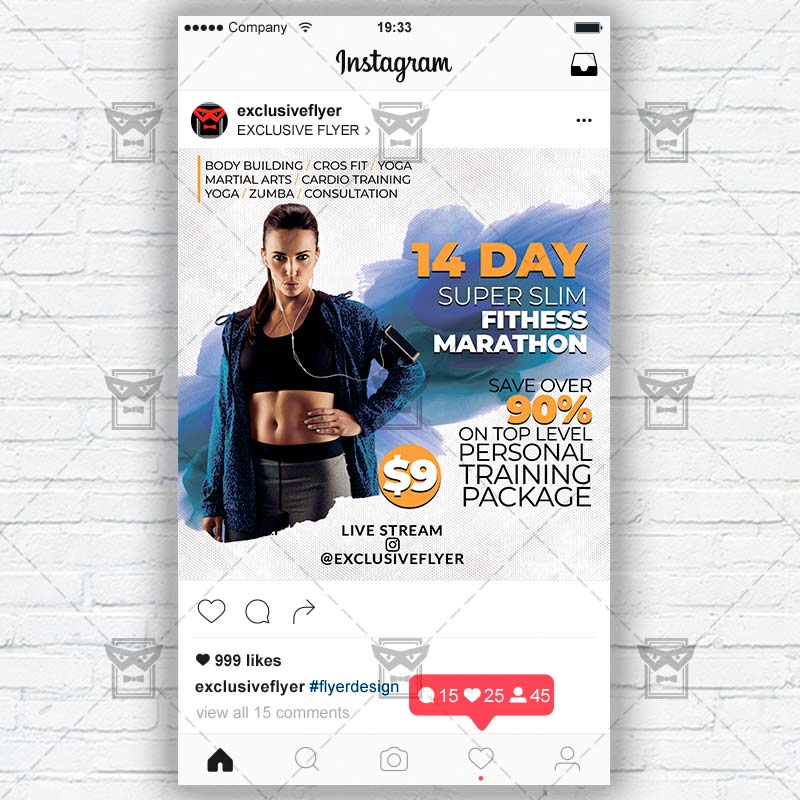 Online Fitness Marathon Template – Flyer PSD + Instagram Ready Size