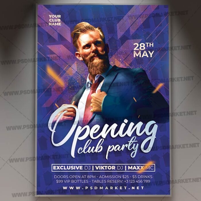 Open Club Party Template Flyer PSD is a simply modern flyer design by PSDmarket Team to be used with Photoshop CS3 and higher. Save your time and use it for business or for your clients! This can be use for Club Opening Party, Bar Opening Event, Club Reopening Night, Bar Reopening Party, Grand Opening Event or Open Bar Party and others.