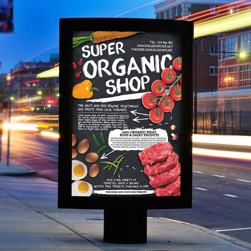 The Organic Shop is the exclusive Photoshop PSD flyer template designed by ExclusiveFlyer to promote your Organic Shop/Market. This is a modern, stylish, fresh flyer and just be used for a Food Shop or Market Shop, or Healthy Food Shop. Dear customers! – you can also: Customize any flyers or Hire Us to create any unique product. Also, you can get unlimited access to all our templates. You can buy 1 month membership, 3 or 6 months membership or even 1 year membership plan and login on site, choose a design, click the button DOWNLOAD TEMPLATE and it’s yours. No hassle, no checkout! When you paid the template, you can find it in your personal account and of course you’ve got a message to your e-mail (maybe in spam) with link to download. Also, you can find all templates, which you buy, in your personal account! All of our flyers have a very good quality (300DPI). And it means that you just need to download one of them and make the necessary modifications such as replace the elements or choose the colors and start to invite your guests! You can order from us design of Banner Ad, Bi-Fold Brochure, Tri-Fold Brochure, Business Card, Logo, One-Sided Flyer, Two-sided Flyer or Postcard. All you need is to checkout and write us all information on our e-mail or skype. (order now). There are a lot of free flyer templates, free business card templates on our site! Also there are a lot of categories of flyers such as club flyers, seasonal flyers, sport flyers and also business flyers. You have a great choise on our site, so good luck! Don’t forget to follow our Facebook community, our page on Twitter, on Pinterest and on Tumblr and leave comments, cause we work for you! PSD is set up in 1275×1875 dimension (4″×6″ with 0,25″ bleed). The PSD file is very well organised, with color coded groups and layers named appropriately. Remember, all stock images of models and other people used only for demonstration all charms of the flyer and don’t included in the download!