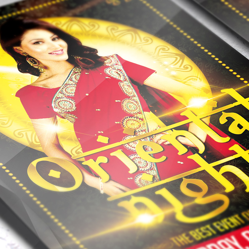 The Oriental Night is the exclusive Photoshop PSD flyer/poster template designed by ExclusiveFlyer to promote your Oriental Night Party. This is a modern, stylish flyer and just be used for a Oriental Night or Indian Style Party or Arabian Party. Dear customers! – you can also: Customize any flyers or Hire Us to create any unique product. Also, you can get unlimited access to all our templates. You can buy 1 month membership, 3 or 6 months membership or even 1 year membership plan and login on site, choose a design, click the button DOWNLOAD TEMPLATE and it’s yours. No hassle, no checkout! When you paid the template, you can find it in your personal account and of course you’ve got a message to your e-mail (maybe in spam) with link to download. Also, you can find all templates, which you buy, in your personal account! All of our flyers have a very good quality (300DPI). And it means that you just need to download one of them and make the necessary modifications such as replace the elements or choose the colors and start to invite your guests! You can order from us design of Banner Ad, Bi-Fold Brochure, Tri-Fold Brochure, Business Card, Logo, One-Sided Flyer, Two-sided Flyer or Postcard. All you need is to checkout and write us all information on our e-mail or skype. (order now). There are a lot of free flyer templates, free business card templates on our site! Also there are a lot of categories of flyers such as club flyers, seasonal flyers, sport flyers and also business flyers. You have a great choise on our site, so good luck! Don’t forget to follow our Facebook community, our page on Twitter, on Pinterest and on Tumblr and leave comments, cause we work for you! PSD is set up in 1275×1875 dimension (4″×6″ with 0,25″ bleed). The PSD file is very well organised, with color coded groups and layers named appropriately. Remember, all stock images of models and other people used only for demonstration all charms of the flyer and don’t included in the download!