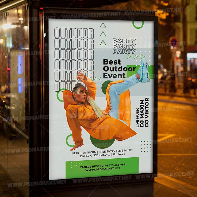 Outdoor Party Flyer is a simply modern flyer design by PSDmarket Team to be used with Photoshop CS3 and higher. Save your time and use it for business or for your clients! This can be use for Outdoor Party Night, Outdoor Bash, Party Night, Club Party, Dj Night, Dj Battle and others.