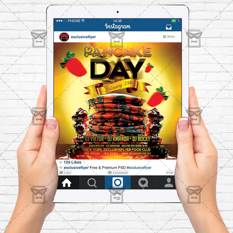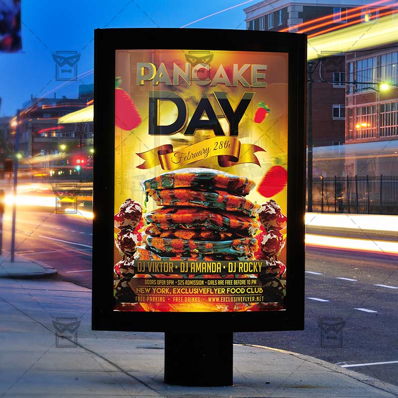 The Pancake Day Vol2 is the exclusive Photoshop PSD flyer template designed by ExclusiveFlyer to promote your Pancake Day Vol2. This is a modern, stylish flyer and just be used for a Pancake National Day, Shrove Tuesday etc. Dear customers! – you can also: Customize any flyers or Hire Us to create any unique product. Also, you can get unlimited access to all our templates. You can buy 1 month membership, 3 or 6 months membership or even 1 year membership plan and login on site, choose a design, click the button DOWNLOAD TEMPLATE and it’s yours. No hassle, no checkout! When you paid the template, you can find it in your personal account and of course you’ve got a message to your e-mail (maybe in spam) with link to download. Also, you can find all templates, which you buy, in your personal account! All of our flyers have a very good quality (300DPI). And it means that you just need to download one of them and make the necessary modifications such as replace the elements or choose the colors and start to invite your guests! You can order from us design of Banner Ad, Bi-Fold Brochure, Tri-Fold Brochure, Business Card, Logo, One-Sided Flyer, Two-sided Flyer or Postcard. All you need is to checkout and write us all information on our e-mail or skype. (order now). There are a lot of free flyer templates, free business card templates on our site! Also there are a lot of categories of flyers such as club flyers, seasonal flyers, sport flyers and also business flyers. You have a great choise on our site, so good luck! Don’t forget to follow our Facebook community, our page on Twitter, on Pinterest and on Tumblr and leave comments, cause we work for you! PSD is set up in 1275×1875 dimension (4” x 6” with 0,25” bleed). The PSD file is very well organised, with color coded groups and layers named appropriately. Remember, all stock images of models and other people used only for demonstration all charms of the flyer and don’t included in the download!
