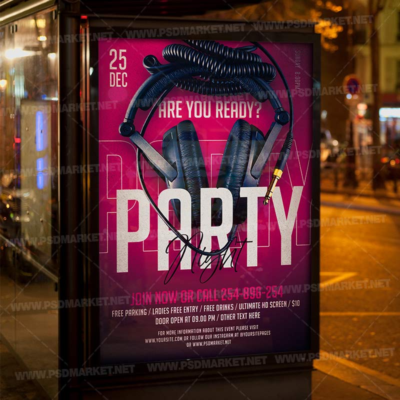 Party Night Template Flyer PSD is a simply modern flyer design by PSDmarket Team to be used with Adobe Photoshop CS3 and higher. Save your time and use it for business or for your clients! This can be use for Party Night, Party Friday, World Party Day, Dj Sound, Dj Club Event, Dj Party, Dj Night, Dj Club Party, Club Party, Online Party, Online Stream Party, Live Party, House Party, Home Night, Party Night, Rave Club Party, Rave Dj, Dj Battle and others.