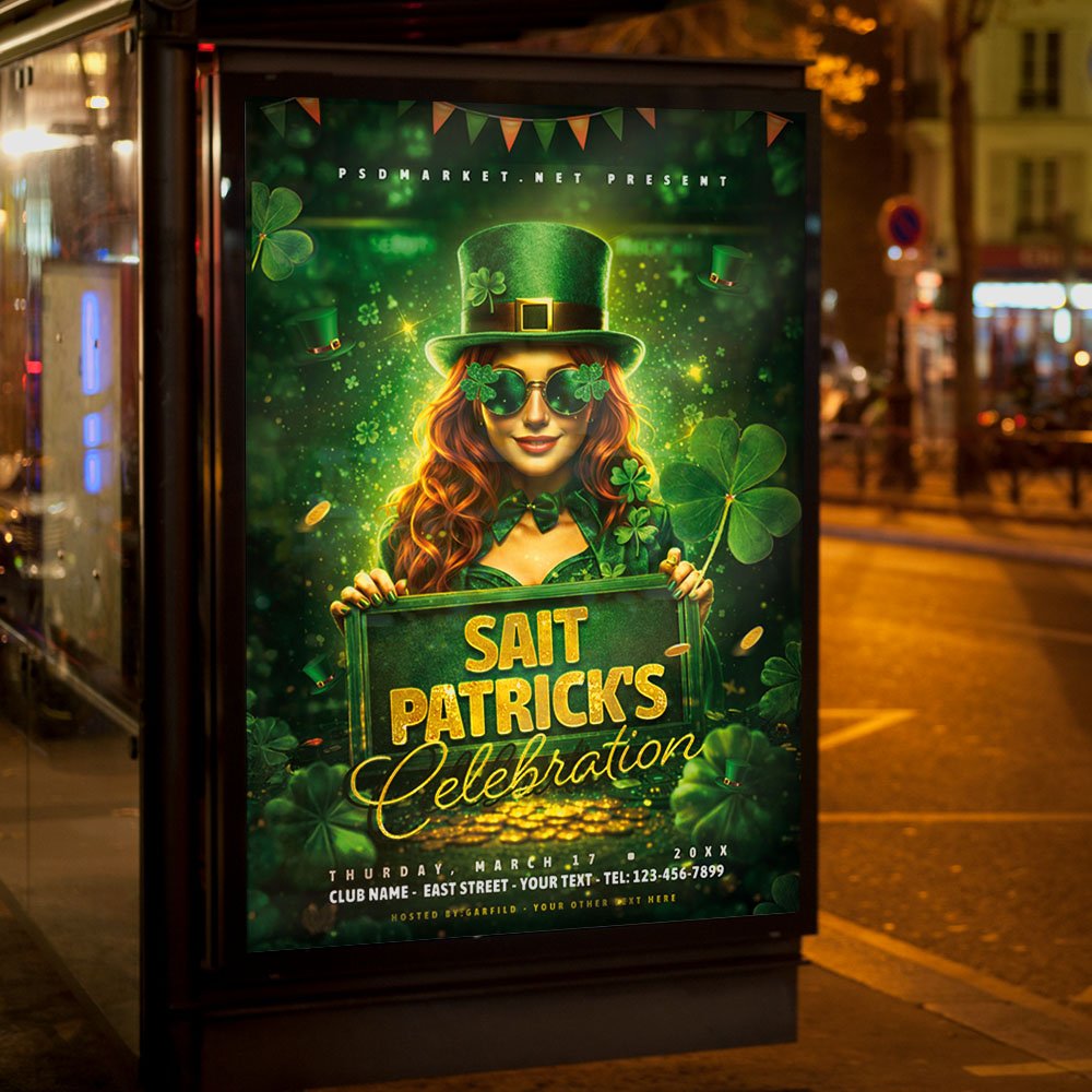 Patricks Celebration 2026 Flyer PSD TemplateElevate the Irish spirit to new heights with the Patricks Celebration 2026 Flyer PSD Template. As we approach March 2026, the demand for high-end, immersive event experiences is surging. This professional Photoshop template is expertly designed for grand celebrations, high-energy pub festivals, and elite club nights. Featuring shimmering 3D shamrocks, cascading gold accents, and a deep emerald cinematic glow, it ensures your promotion looks as legendary as the party itself. In a sea of green, this design acts as a beacon for every 2026 reveler looking for a premium place to celebrate. The Patricks Celebration 2026 Flyer PSD Template is a robust tool built for professional creators. This fully layered and organized PSD file allows you to take total creative control over the atmosphere. You can effortlessly update text layers to highlight your guest performers, 2026 tour dates, and venue location. Use the smart object features to promote exclusive 2026 event highlights such as VIP “Golden Circle” table service, traditional Irish whiskey tasting flights, live immersive light shows, or early-bird guest list registration. Every detail, from the soft light flares to the intricate textures, is rendered in high resolution for a high-gloss, authoritative finish. Optimized for a dominant 360-degree marketing campaign in 2026, this template is 100% print-ready and perfectly scaled for viral social media engagement. Create high-impact physical posters for your venue and simultaneously export perfectly sized graphics for Instagram, TikTok, and Facebook. This ensures your Patrick’s Celebration 2026 message reaches your target audience across all platforms, driving ticket sales and early bookings. By choosing this distinctive and professional flyer, you aren’t just announcing an event—you’re building a brand. Download the Patricks Celebration 2026 Flyer PSD Template today and lead the holiday with style! — Features of the Patricks Celebration 2026 Flyer PSD Template