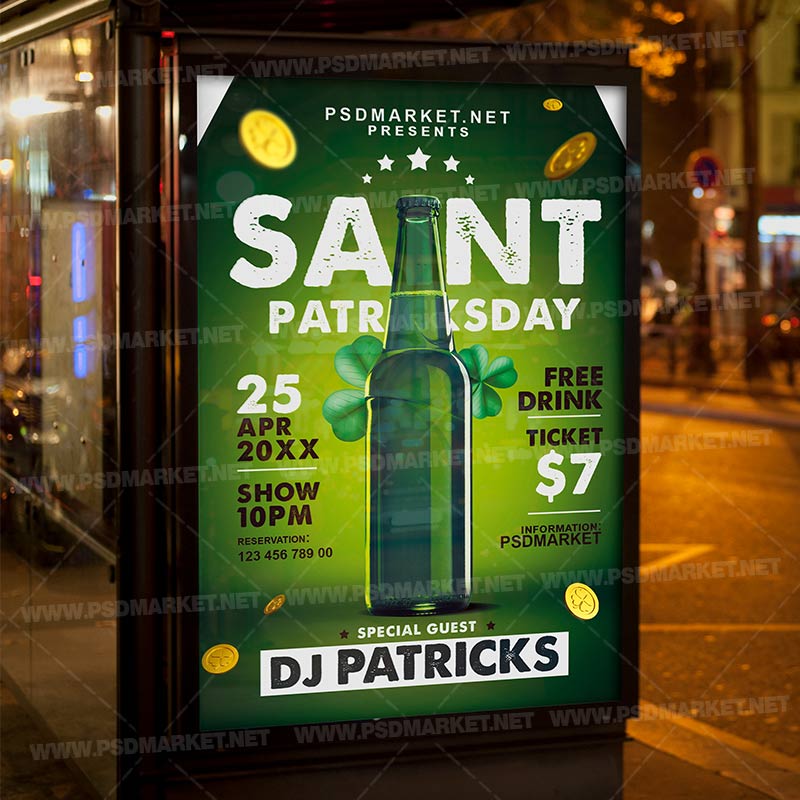 Patricks Night Event PSD Template Flyer is a simply modern flyer design by PSDmarket Team to be used with Adobe Photoshop CS3 and higher. Save your time and use it for business or for your clients! This can be use Patricks Night Event, Patricks Event, for St Patricks Day, Patricks Night, St Patricks Day Party, Lucky Charm Party, Saint Patricks Day, Festival of Patrick, Saint Patricks Night Party, Lucky Charm Club Party Party and others.