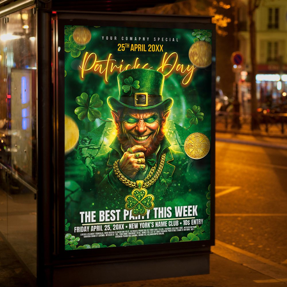 Patricks Party 2026 Flyer PSD TemplateGet ready to host the most talked-about celebration of the season with the Patricks Party 2026 Flyer PSD Template. As March 2026 approaches, the competition for the best St. Paddy’s event is fierce. To stand out, your promotion needs more than just a green background—it needs a professional, high-impact aesthetic that screams “exclusive experience.” This template is meticulously designed for club owners, pub managers, and event promoters who want to showcase a modern, high-energy Irish bash featuring shimmering 3D clovers, golden coin accents, and cinematic emerald lighting. The Patricks Party 2026 Flyer PSD Template is a powerhouse of customizability. This fully layered Photoshop file is organized to ensure that even the busiest promoter can create a masterpiece in minutes. Use the smart object layers to update the headlining DJ list, live band info, and the 2026 date. You can easily adapt the design for specific 2026 activations such as “Pot of Gold” VIP bottle service, green craft beer tastings, interactive leprechaun photo zones, or live Celtic-electronic hybrid sets. High-resolution textures ensure that every sparkling gold element and deep green shadow looks sharp and premium. In the digital-first landscape of 2026, versatility is everything. This template is 100% print-ready for high-quality physical posters and flyers, while also being perfectly formatted for social media dominance. Whether you are launching a countdown on Instagram Stories, a promo video on TikTok, or a Facebook event page, this design provides the high-gloss finish your brand deserves. Don’t just throw a party—create a 2026 legacy. Download the Patricks Party 2026 Flyer PSD Template today and let the luck of the Irish drive your ticket sales! — Features of the Patricks Party 2026 Flyer PSD Template