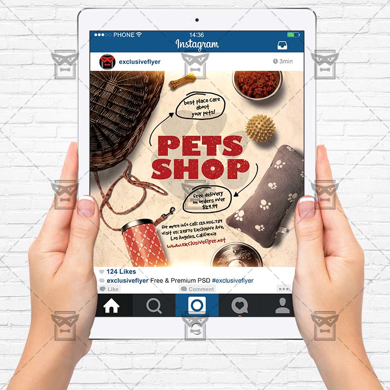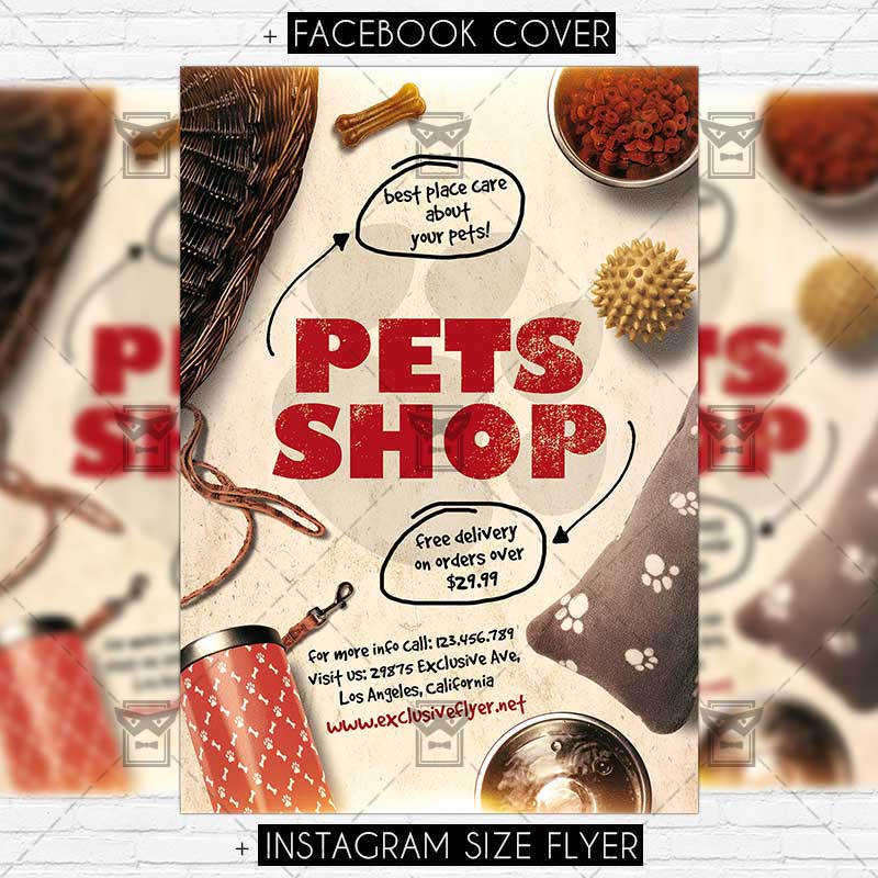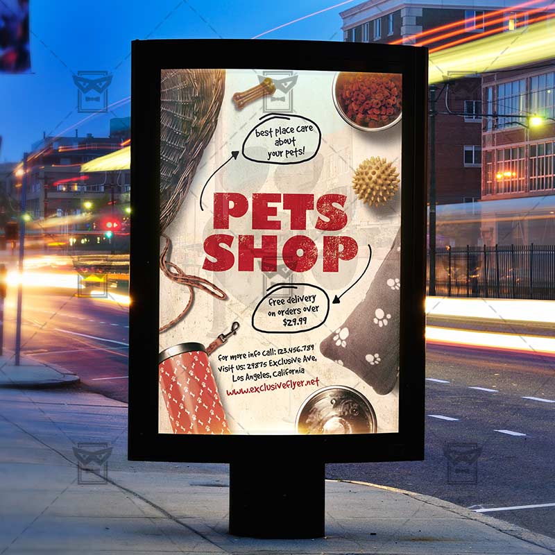 The Pets Shop is the exclusive Photoshop PSD flyer template designed by ExclusiveFlyer to promote your Pets Shop. This is a modern, stylish flyer and just be used for a Pets Shop, Zoo Shop etc. Dear customers! – you can also: Customize any flyers or Hire Us to create any unique product. Also, you can get unlimited access to all our templates. You can buy 1 month membership, 3 or 6 months membership or even 1 year membership plan and login on site, choose a design, click the button DOWNLOAD TEMPLATE and it’s yours. No hassle, no checkout! When you paid the template, you can find it in your personal account and of course you’ve got a message to your e-mail (maybe in spam) with link to download. Also, you can find all templates, which you buy, in your personal account! All of our flyers have a very good quality (300DPI). And it means that you just need to download one of them and make the necessary modifications such as replace the elements or choose the colors and start to invite your guests! You can order from us design of Banner Ad, Bi-Fold Brochure, Tri-Fold Brochure, Business Card, Logo, One-Sided Flyer, Two-sided Flyer or Postcard. All you need is to checkout and write us all information on our e-mail or skype. (order now). There are a lot of free flyer templates, free business card templates on our site! Also there are a lot of categories of flyers such as club flyers, seasonal flyers, sport flyers and also business flyers. You have a great choise on our site, so good luck! Don’t forget to follow our Facebook community, our page on Twitter, on Pinterest and on Tumblr and leave comments, cause we work for you! PSD is set up in 1275×1875 dimension (4” x 6” with 0,25” bleed). The PSD file is very well organised, with color coded groups and layers named appropriately. Remember, all stock images of models and other people used only for demonstration all charms of the flyer and don’t included in the download!