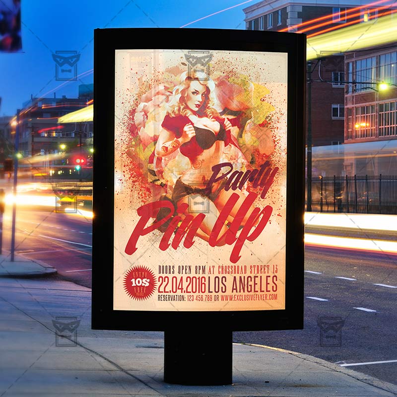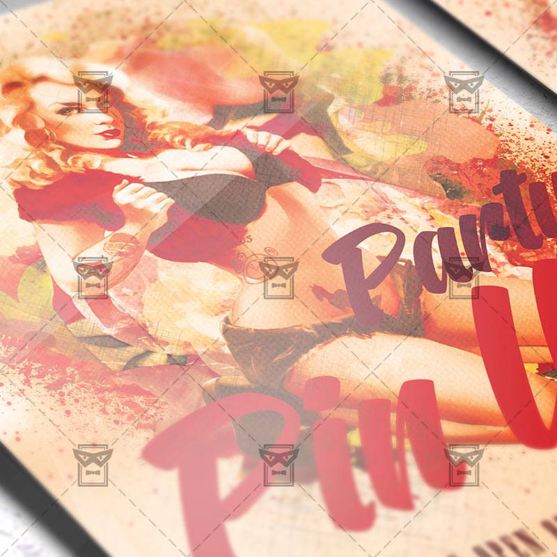 The Pin Up Party is the exclusive Photoshop PSD flyer template designed by ExclusiveFlyer to promote your Pin Up Party. This is a modern, stylish flyer and just be used for a Vintage Night or Retro Spring Night etc. Dear customers! – you can also: Customize any flyers or Hire Us to create any unique product. Also, you can get unlimited access to all our templates. You can buy 1 month membership, 3 or 6 months membership or even 1 year membership plan and login on site, choose a design, click the button DOWNLOAD TEMPLATE and it’s yours. No hassle, no checkout! When you paid the template, you can find it in your personal account and of course you’ve got a message to your e-mail (maybe in spam) with link to download. Also, you can find all templates, which you buy, in your personal account! All of our flyers have a very good quality (300DPI). And it means that you just need to download one of them and make the necessary modifications such as replace the elements or choose the colors and start to invite your guests! You can order from us design of Banner Ad, Bi-Fold Brochure, Tri-Fold Brochure, Business Card, Logo, One-Sided Flyer, Two-sided Flyer or Postcard. All you need is to checkout and write us all information on our e-mail or skype. (order now). There are a lot of free flyer templates, free business card templates on our site! Also there are a lot of categories of flyers such as club flyers, seasonal flyers, sport flyers and also business flyers. You have a great choise on our site, so good luck! Don’t forget to follow our Facebook community, our page on Twitter, on Pinterest and on Tumblr and leave comments, cause we work for you! PSD is set up in 1275×1875 dimension (4” x 6” with 0,25” bleed). The PSD file is very well organised, with color coded groups and layers named appropriately. Remember, all stock images of models and other people used only for demonstration all charms of the flyer and don’t included in the download!
