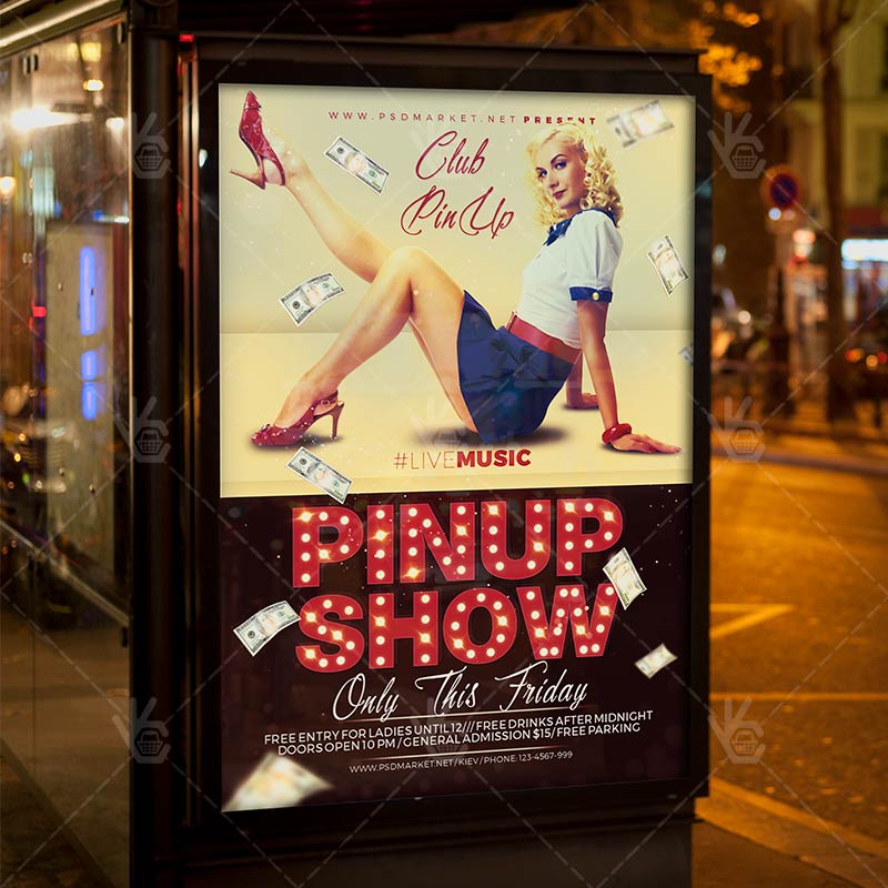 Pin Up Show Flyer is a simply modern flyer design by PSDmarket Team to be used with Photoshop CS3 and higher. Save your time and use it for business or for your clients! This can be use for Pin Up Show, Pin Up Show Party Night, Pin Up Show Event, Pin Up Show Night, Pin Up Party, Third Annual Pin-up Peep Show, Pin Up Contest, Pin Up Fridays, The Pin Up Magazine and others.