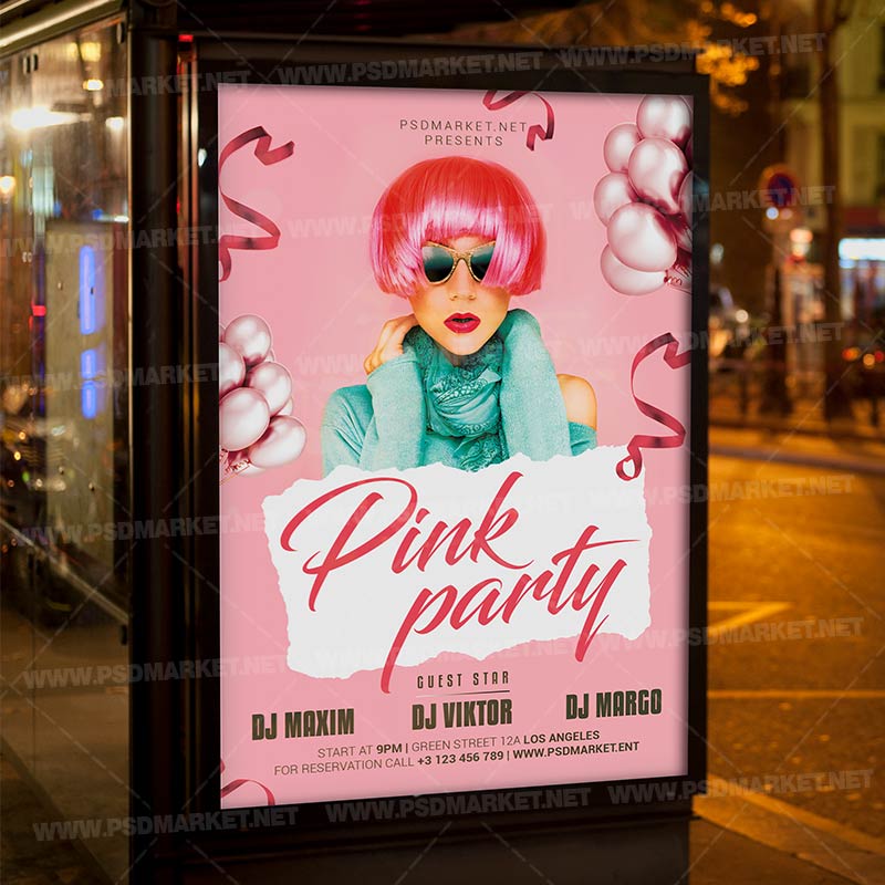 Pink Party Night Flyer is a simply modern flyer design by PSDmarket Team to be used with Photoshop CS3 and higher. Save your time and use it for business or for your clients! This can be use for Pink Party, Pink Bash, Pink Affair, Pink Madness, Pink Club Party and others.