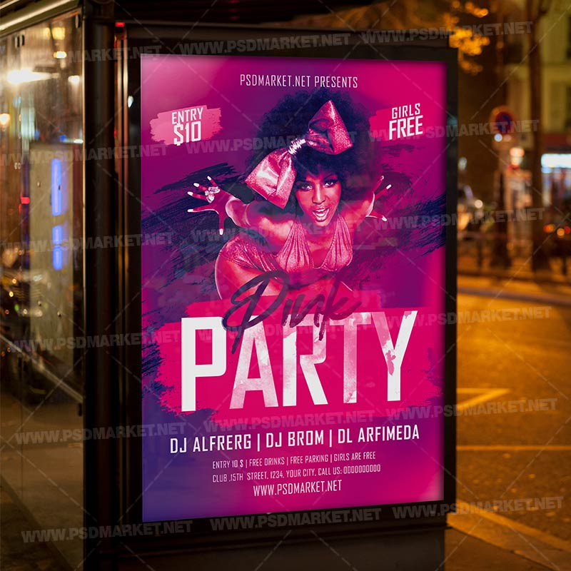 - Pink Party Night Template – Flyer PSD