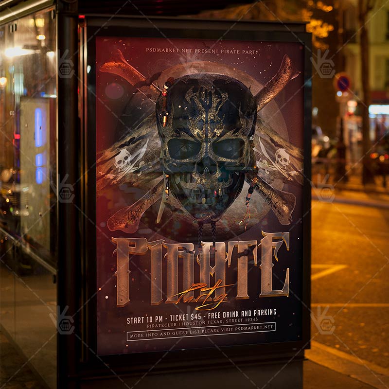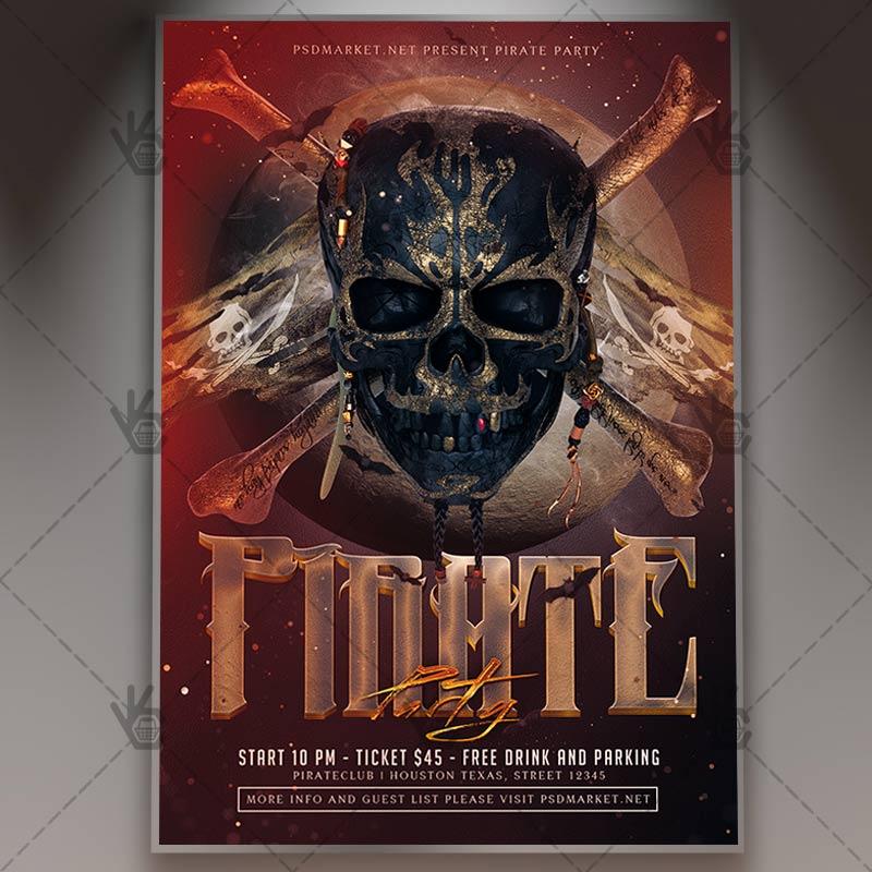 Pirate Party is a simply modern flyer design by PSDmarket Team to be used with Photoshop CS3 and higher. Save your time and use it for business or for your clients! This can be use for Pirate Festival, Pirate Costume Party, Columbus Day, Columbus Party, Pirate Night, Columbus Night and others.