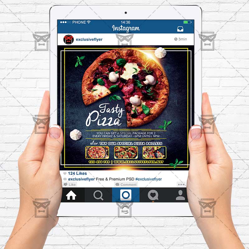 The Pizza Promo is the exclusive Photoshop PSD flyer template designed by ExclusiveFlyer to promote your Pizza Place. This is a modern, stylish flyer and just be used for a Pizza Fest, Pizza House, Pizza Day etc. Dear customers! – you can also: Customize any flyers or Hire Us to create any unique product. Also, you can get unlimited access to all our templates. You can buy 1 month membership, 3 or 6 months membership or even 1 year membership plan and login on site, choose a design, click the button DOWNLOAD TEMPLATE and it’s yours. No hassle, no checkout! When you paid the template, you can find it in your personal account and of course you’ve got a message to your e-mail (maybe in spam) with link to download. Also, you can find all templates, which you buy, in your personal account! All of our flyers have a very good quality (300DPI). And it means that you just need to download one of them and make the necessary modifications such as replace the elements or choose the colors and start to invite your guests! You can order from us design of Banner Ad, Bi-Fold Brochure, Tri-Fold Brochure, Business Card, Logo, One-Sided Flyer, Two-sided Flyer or Postcard. All you need is to checkout and write us all information on our e-mail or skype. (order now). There are a lot of free flyer templates, free business card templates on our site! Also there are a lot of categories of flyers such as club flyers, seasonal flyers, sport flyers and also business flyers. You have a great choise on our site, so good luck! Don’t forget to follow our Facebook community, our page on Twitter, on Pinterest and on Tumblr and leave comments, cause we work for you! PSD is set up in 1275×1875 dimension (4” x 6” with 0,25” bleed). The PSD file is very well organised, with color coded groups and layers named appropriately. Remember, all stock images of models and other people used only for demonstration all charms of the flyer and don’t included in the download!