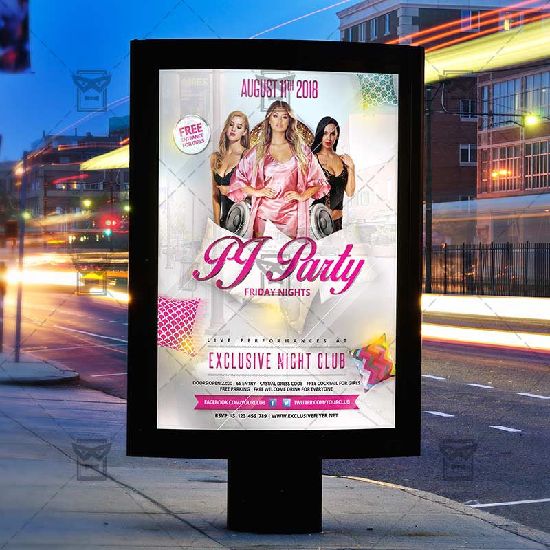 Pj Party is an exclusive PSD flyer template for Adobe Photoshop designed by our best graphic designers to facilitate your task in promoting your business. With our readymade Club flyer in psd format you can invite you customers and guest to your event or to the best Pj Party Night, Pajama Party, Pajama Ladies Night or Best Sexy Pajamas Party in their lives.