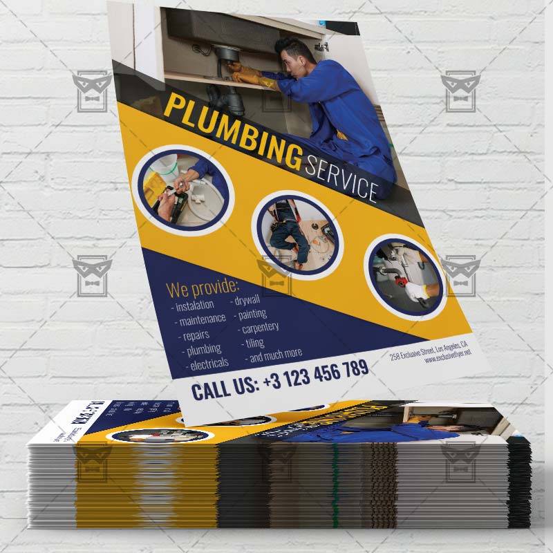 Plumbing Service Flyer Template an exclusive PSD flyer template for Adobe Photoshop designed by our best graphic designers to facilitate your task in promoting your business. With our readymade Business flyer in psd format you can invite customers to your Plumber, Plumbing Service, Handyman, Handyman Service.