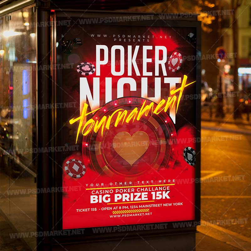 Poker Template Flyer PSD is a simply modern flyer design by PSDmarket Team to be used with Photoshop CS3 and higher. Save your time and use it for business or for your clients! This can be use for Poker, Casino, Casino Night, Poker Night, Roulette Night, Poker Tournament, Casino Royal, Las Vegas Poker Night and others.