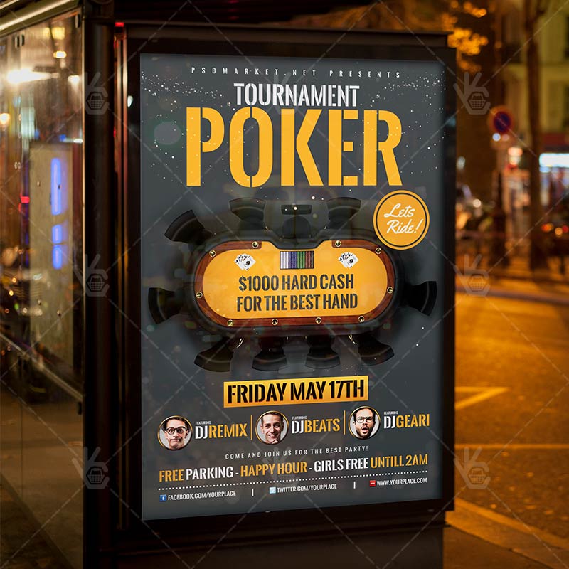 Poker Tournament is a simply modern flyer design by PSDmarket Team to be used with Photoshop CS3 and higher. Save your time and use it for business or for your clients! This can be use for Poker Night, Poker Run, Poker Lessons, Poker Game, Casino Night, Poker Day or Poker Event and others.