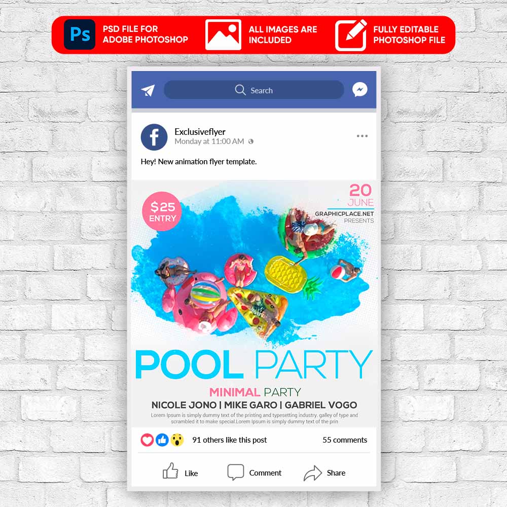 Pool Party Social Media Video Template is great to promote your party, night club, festival, music show, karaoke bar, restaurant, sport bar, beer pub etc. You are welcome to download or buy any Video Flyer Template in PSD from Exclusiveflyer.net and become really successful! It is your exclusive chance to save your time and a lot of money, just use our ready-made PSD Video Flyers for promoting your events on Facebook with facebook covers, on Instagram or any other social network with square size videos!