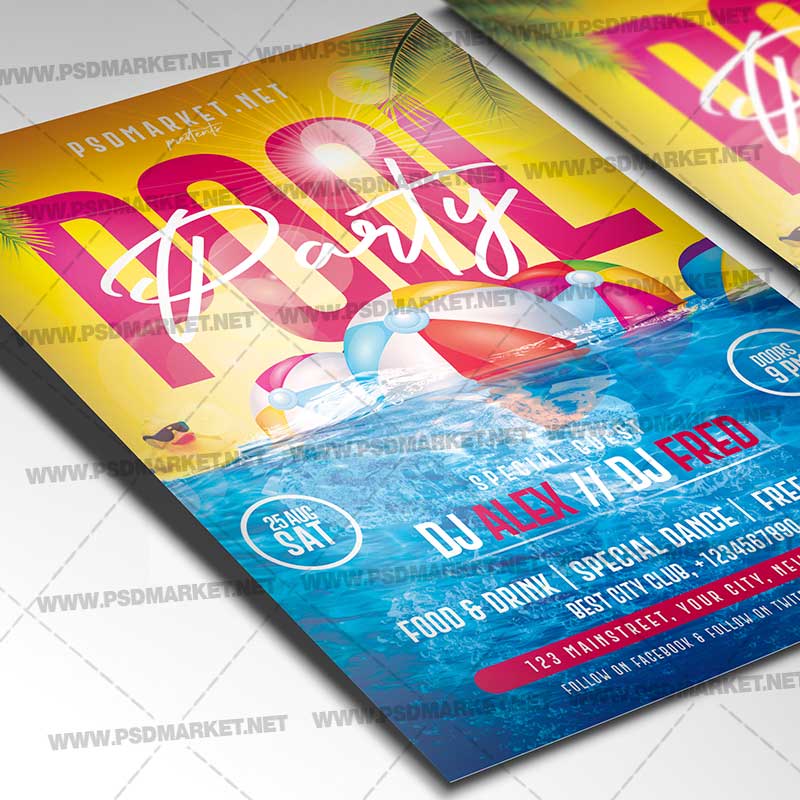 Pool Party Template Flyer PSD is a simply modern flyer design by PSDmarket Team to be used with Photoshop CS3 and higher. Save your time and use it for business or for your clients! This can be use for Pool Party, Pool Night, Pool Partyt, Pool Event, Summer Night Part, Summer Time, Summer Party, Summer Vibes, Summer Madness Party, Summer Night, Summer Time Party, Club Summer Party, Summer Dj Night, Summer Ibiza Party and others.
