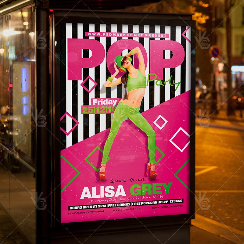 Pop Party is a simply modern flyer design by PSDmarket Team to be used with Photoshop CS3 and higher. Save your time and use it for business or for your clients! This can be use for Pop Day, Thanksgiving Fest, Pop Music Party, Pop Music Night, Pop Music Celebration or Pop Music Festival and others.