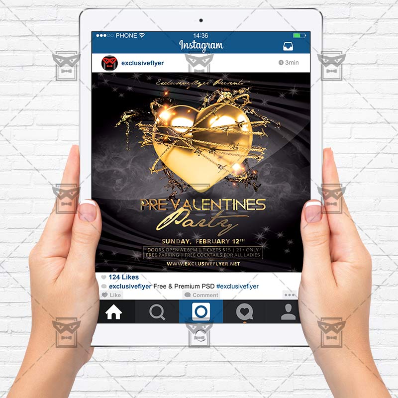 The Pre Valentines Party is the exclusive Photoshop PSD flyer template designed by ExclusiveFlyer to promote your Pre Valentines Party. This is a modern, stylish flyer and just be used for a Valentine’s Day Party, Cupid Night, Find Your Valentine Party, Speed Dating Event etc. Dear customers! – you can also: Customize any flyers or Hire Us to create any unique product. Also, you can get unlimited access to all our templates. You can buy 1 month membership, 3 or 6 months membership or even 1 year membership plan and login on site, choose a design, click the button DOWNLOAD TEMPLATE and it’s yours. No hassle, no checkout! When you paid the template, you can find it in your personal account and of course you’ve got a message to your e-mail (maybe in spam) with link to download. Also, you can find all templates, which you buy, in your personal account! All of our flyers have a very good quality (300DPI). And it means that you just need to download one of them and make the necessary modifications such as replace the elements or choose the colors and start to invite your guests! You can order from us design of Banner Ad, Bi-Fold Brochure, Tri-Fold Brochure, Business Card, Logo, One-Sided Flyer, Two-sided Flyer or Postcard. All you need is to checkout and write us all information on our e-mail or skype. (order now). There are a lot of free flyer templates, free business card templates on our site! Also there are a lot of categories of flyers such as club flyers, seasonal flyers, sport flyers and also business flyers. You have a great choise on our site, so good luck! Don’t forget to follow our Facebook community, our page on Twitter, on Pinterest and on Tumblr and leave comments, cause we work for you! PSD is set up in 1275×1875 dimension (4” x 6” with 0,25” bleed). The PSD file is very well organised, with color coded groups and layers named appropriately. Remember, all stock images of models and other people used only for demonstration all charms of the flyer and don’t included in the download!