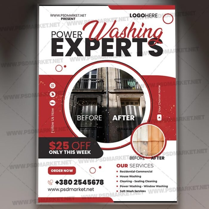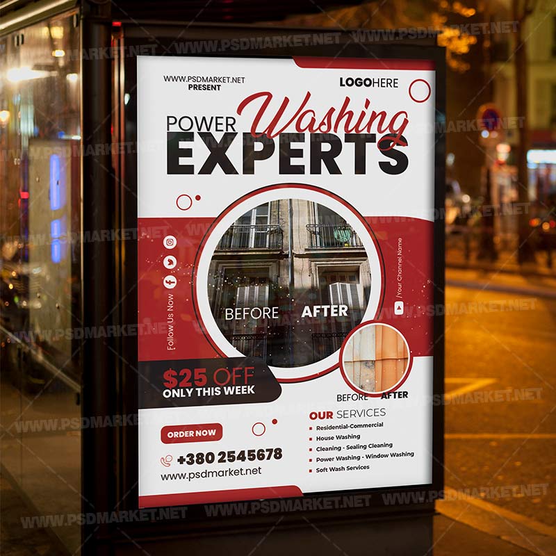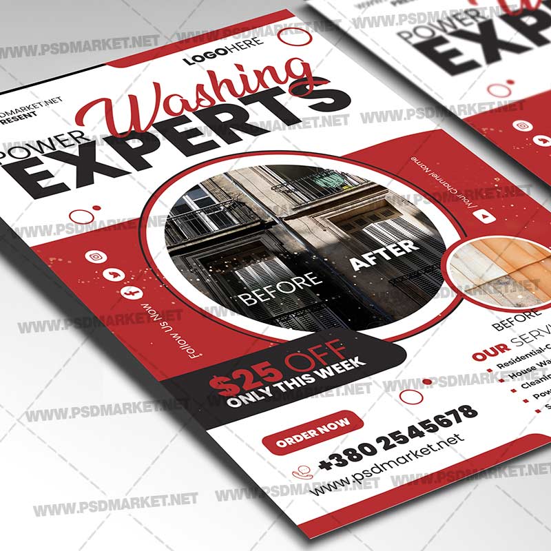 Pressure Cleaning Card Printable Template Flyer PSD for Adobe Photoshop