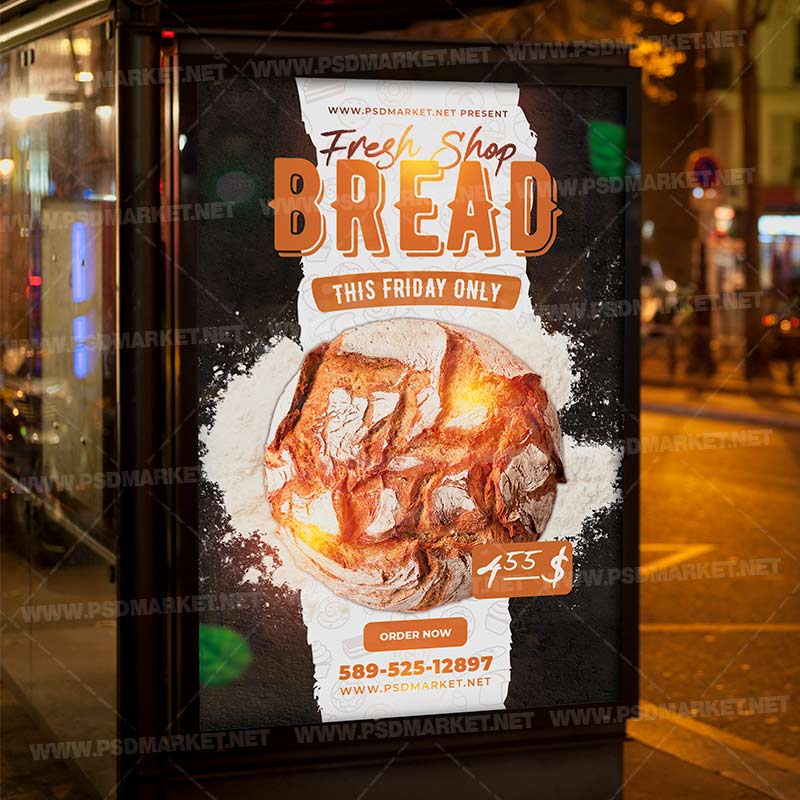 Printable Bread Template Flyer PSD is a simply modern flyer design by PSDmarket Team to be used with Adobe Photoshop CS3 and higher. Save your time and use it for business or for your clients! This can be use for Printable Bread, Fresh Bread Shop, Delivery Bread, Bread Shop, Bread Day, Bakery Day, Bakery Fest, Bakery Shop, Bakery Sale, Bakery Class, Sweet Bakery or Bakery Store and others.
