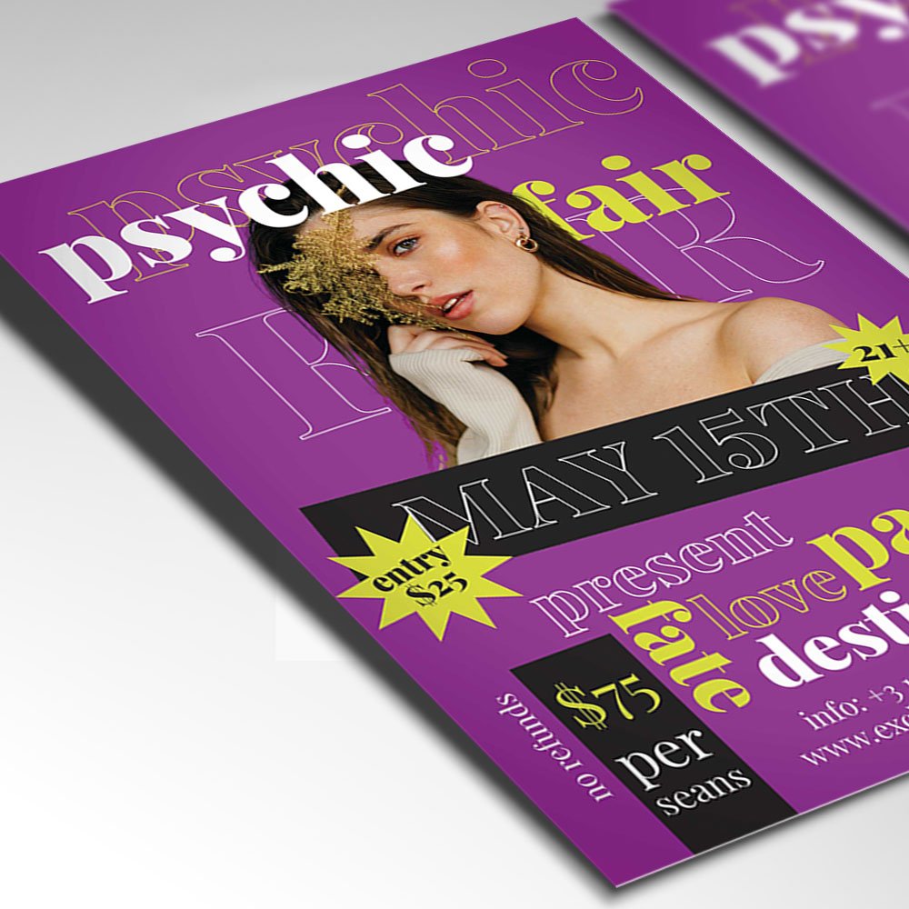 Psychic Fair Flyer PSD TemplateGather the mystics and seekers for an unforgettable event with the Psychic Fair Flyer PSD Template. As spiritual exploration continues to trend through 2026, a high-quality visual presentation is essential to attract a diverse audience of truth-seekers. This professional Photoshop template is designed to represent the energy of discovery, featuring ethereal crystal ball elements, floating esoteric symbols, and a deep, atmospheric color palette that hints at the wisdom to be found within your event. The Psychic Fair Flyer PSD Template is the ultimate toolkit for organizers of spiritual expos, holistic fairs, and metaphysical gatherings. The PSD file is meticulously organized, making it easy to list a wide variety of attractions. Use the clearly labeled layers to add your headlining tarot readers, aura photographers, mediumship specialists, and crystal healing vendors. With smart object integration, you can quickly update the 2026 date, venue location, and early-bird ticket info. The 300 DPI high-resolution ensures that your design looks as premium on a physical storefront window as it does on a high-definition mobile screen. In the competitive event landscape of 2026, clarity and vibe are everything. This template is 100% print-ready and perfectly sized for viral social media promotion. Whether you are creating an event page on Facebook, a teaser reel for TikTok, or high-gloss posters for a wellness center, this design delivers a professional, authoritative aesthetic. Don’t leave your fair’s attendance to chance—ensure a packed house with a design that speaks to the soul. Download the Psychic Fair Flyer PSD Template today and let the energy flow! — Features of the Psychic Fair Flyer PSD Template