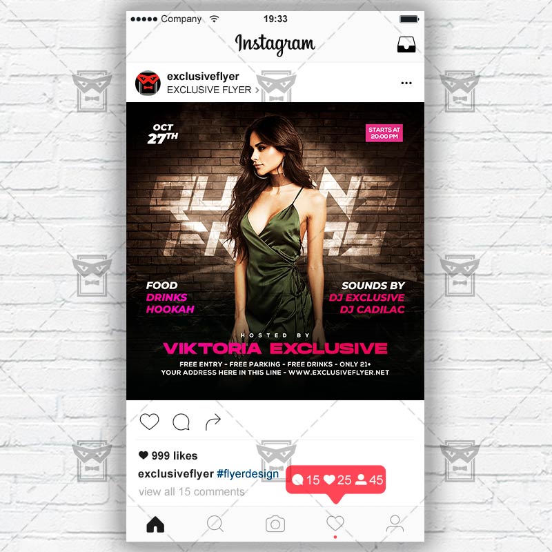 Queens Friday Template an exclusive PSD flyer template for Adobe Photoshop designed by our best graphic designers to facilitate your task in promoting your business. With our readymade Club flyer in psd format you can invite you customers and guest to your event or to the best Party Club, Girls Night, Party Online, Girls Night Out Party, Live Show Night, Online Show. Online Dj Battle, Online Party On in their lives.