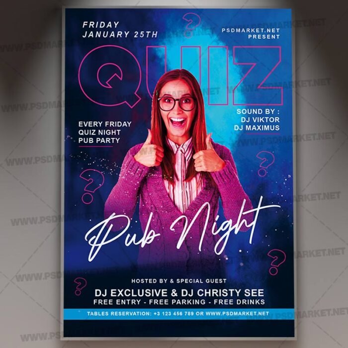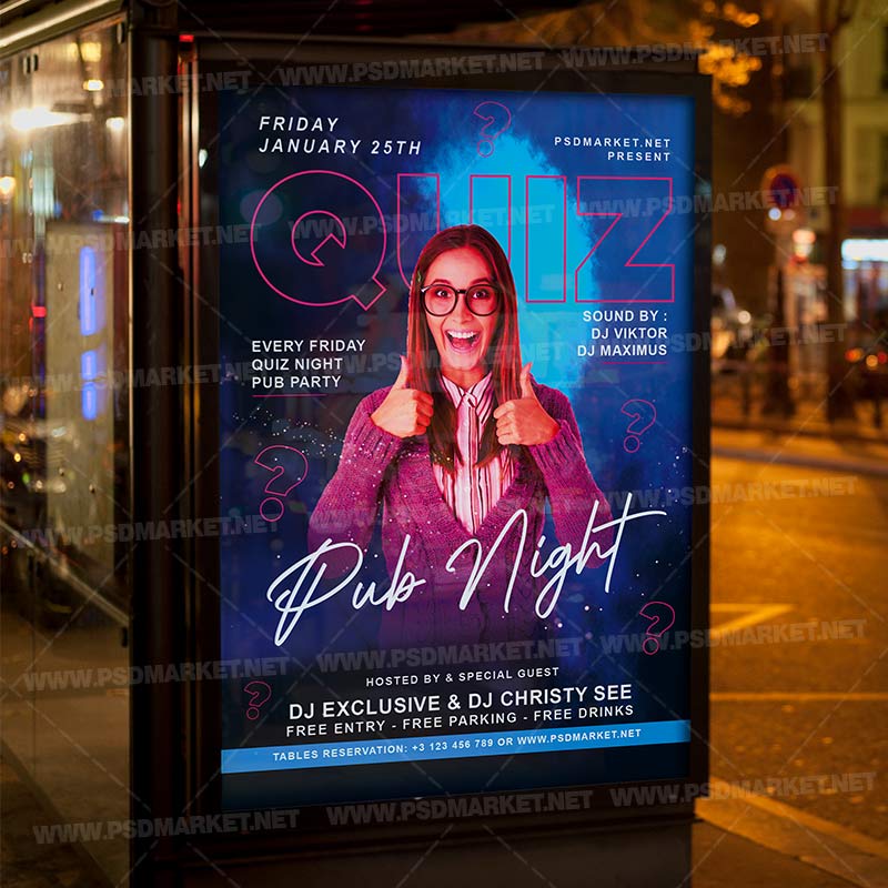 Quiz Pub Card Printable Template Flyer PSD is a simply modern flyer design by PSDmarket Team to be used with Adobe Photoshop CS3 and higher. Save your time and use it for business or for your clients! This can be use for Trivia Night, Quiz Night, Pub Quiz, Quiz Party, Quiz Night, Trivia, Trivia Party, Quiz Night, Quiz Party, Trivia Night, Trivia Day, Pub Quiz or So-Called Pub Quiz and others.