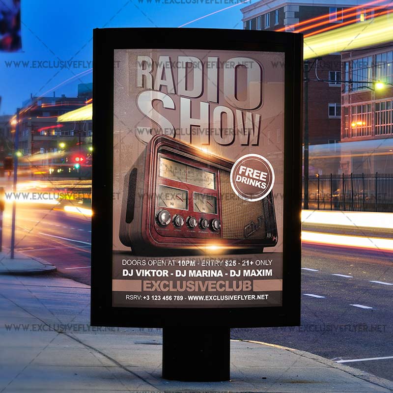 The Radio Show is the exclusive Photoshop PSD flyer template designed by ExclusiveFlyer to promote your Radio Show. This is a modern, stylish flyer and just be used for a Radio Night, Retro Radio Show, Vintage Radio Party etc.
