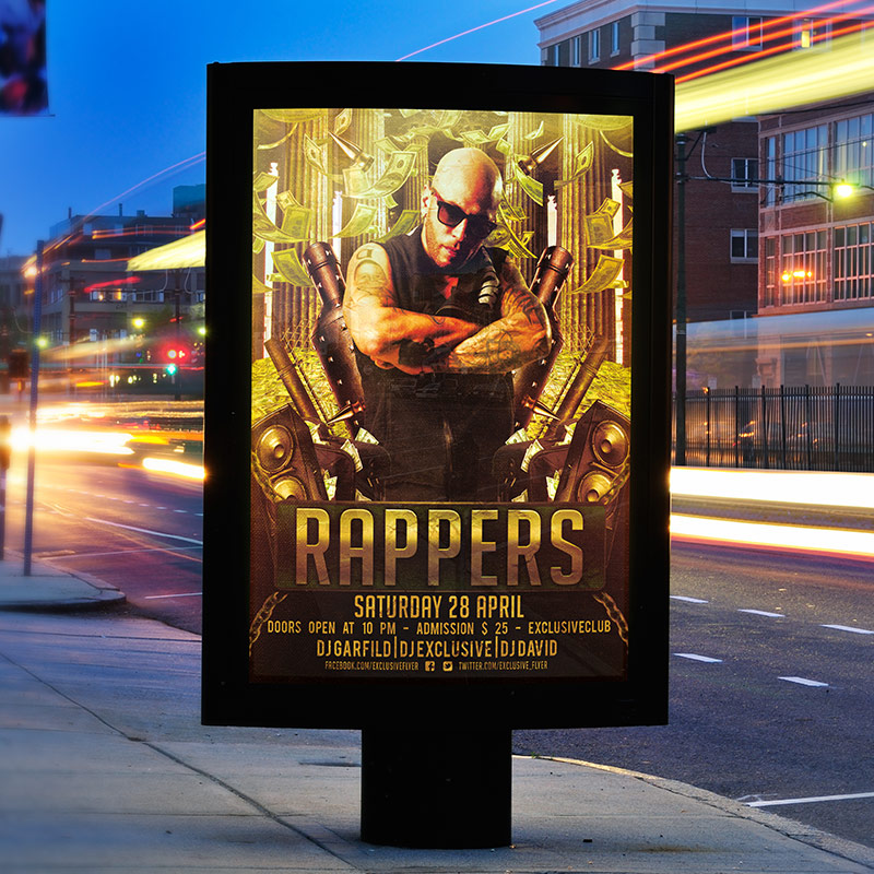 The Rappers Party is the exclusive Photoshop PSD flyer template designed by ExclusiveFlyer to promote your Rappers Party. This is a modern, stylish, green flyer and just be used for a Rappers Battle or maybe Rappers Night. Dear customers! – you can also: Customize any flyers or Hire Us to create any unique product. Also, you can get unlimited access to all our templates. You can buy 1 month membership, 3 or 6 months membership or even 1 year membership plan and login on site, choose a design, click the button DOWNLOAD TEMPLATE and it’s yours. No hassle, no checkout! When you paid the template, you can find it in your personal account and of course you’ve got a message to your e-mail (maybe in spam) with link to download. Also, you can find all templates, which you buy, in your personal account! All of our flyers have a very good quality (300DPI). And it means that you just need to download one of them and make the necessary modifications such as replace the elements or choose the colors and start to invite your guests! You can order from us design of Banner Ad, Bi-Fold Brochure, Tri-Fold Brochure, Business Card, Logo, One-Sided Flyer, Two-sided Flyer or Postcard. All you need is to checkout and write us all information on our e-mail or skype. (order now). There are a lot of free flyer templates, free business card templates on our site! Also there are a lot of categories of flyers such as club flyers, seasonal flyers, sport flyers and also business flyers. You have a great choise on our site, so good luck! Don’t forget to follow our Facebook community, our page on Twitter, on Pinterest and on Tumblr and leave comments, cause we work for you! PSD is set up in 1275×1875 dimension (4″×6″ with 0,25″ bleed). The PSD file is very well organised, with color coded groups and layers named appropriately. Remember, all stock images of models and other people used only for demonstration all charms of the flyer and don’t included in the download!