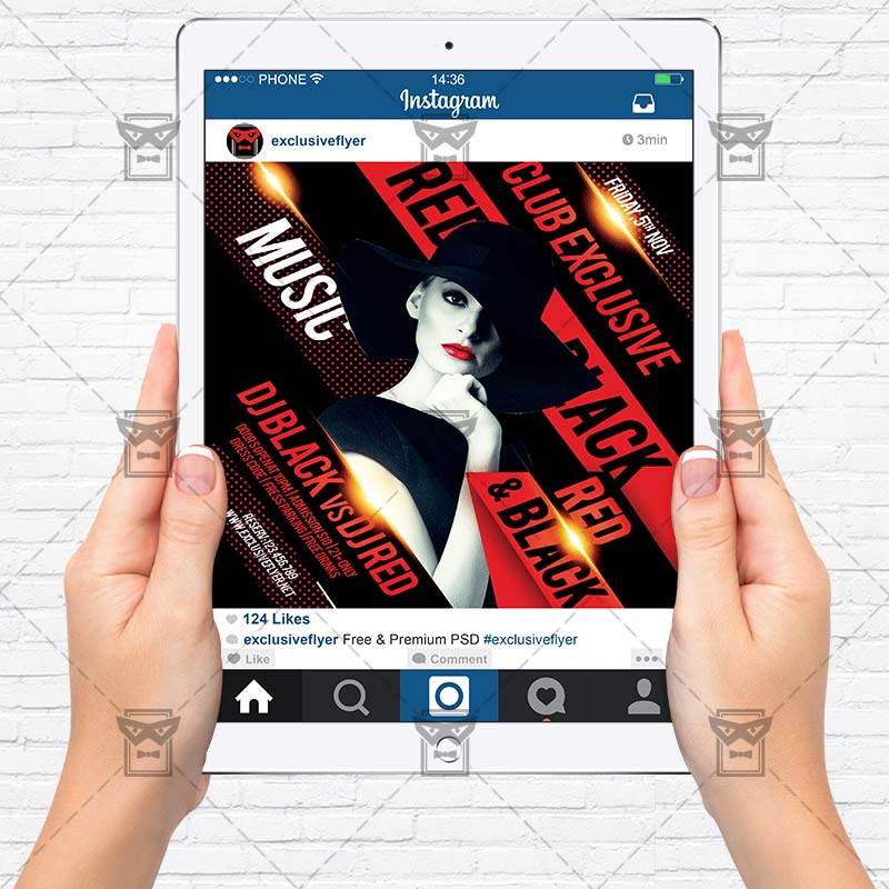 The Red and Black is the exclusive Photoshop PSD flyer template designed by ExclusiveFlyer to promote your Red and Black Party. This is a modern, stylish flyer and just be used for a Red Party, Black Party, Sexy Party, Lisiry Night, Ladies Night etc. Dear customers! – you can also: Customize any flyers or Hire Us to create any unique product. Also, you can get unlimited access to all our templates. You can buy 1 month membership, 3 or 6 months membership or even 1 year membership plan and login on site, choose a design, click the button DOWNLOAD TEMPLATE and it’s yours. No hassle, no checkout! When you paid the template, you can find it in your personal account and of course you’ve got a message to your e-mail (maybe in spam) with link to download. Also, you can find all templates, which you buy, in your personal account! All of our flyers have a very good quality (300DPI). And it means that you just need to download one of them and make the necessary modifications such as replace the elements or choose the colors and start to invite your guests! You can order from us design of Banner Ad, Bi-Fold Brochure, Tri-Fold Brochure, Business Card, Logo, One-Sided Flyer, Two-sided Flyer or Postcard. All you need is to checkout and write us all information on our e-mail or skype. (order now). There are a lot of free flyer templates, free business card templates on our site! Also there are a lot of categories of flyers such as club flyers, seasonal flyers, sport flyers and also business flyers. You have a great choise on our site, so good luck! Don’t forget to follow our Facebook community, our page on Twitter, on Pinterest and on Tumblr and leave comments, cause we work for you! PSD is set up in 1275×1875 dimension (4” x 6” with 0,25” bleed). The PSD file is very well organised, with color coded groups and layers named appropriately. Remember, all stock images of models and other people used only for demonstration all charms of the flyer and don’t included in the download!
