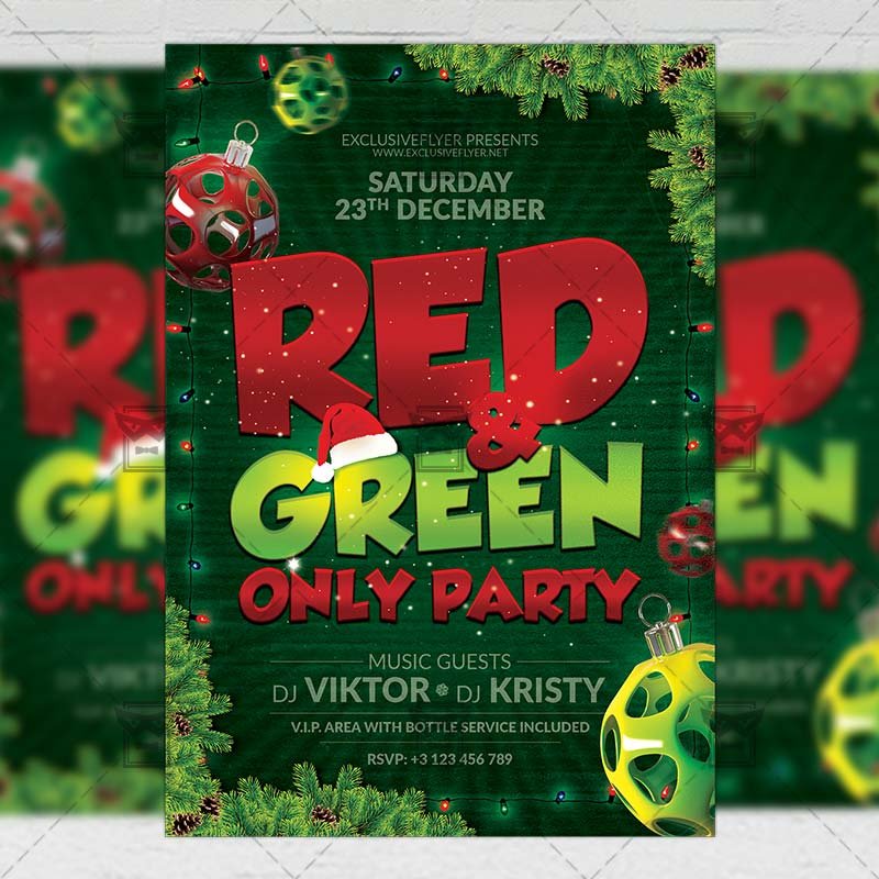 Red and Green Only Party – Seasonal A5 Flyer Template
