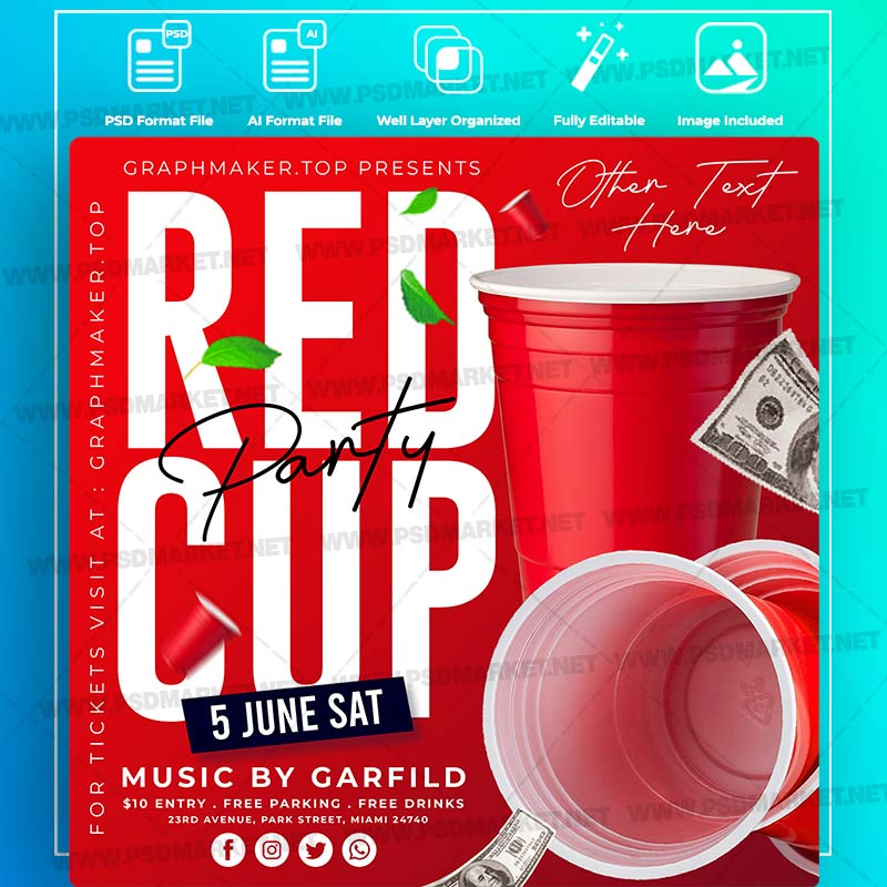Red Cup Party Templates in PSD & Vector