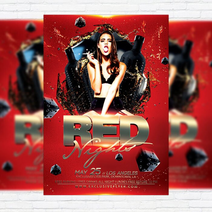 The Red Night is the exclusive Photoshop PSD flyer template designed by ExclusiveFlyer to promote your Red Night Party . This is a modern, stylish flyer and just be used for a Ladies Night or Vip Party etc. Dear customers! – you can also: Customize any flyers or Hire Us to create any unique product. Also, you can get unlimited access to all our templates. You can buy 1 month membership, 3 or 6 months membership or even 1 year membership plan and login on site, choose a design, click the button DOWNLOAD TEMPLATE and it’s yours. No hassle, no checkout! When you paid the template, you can find it in your personal account and of course you’ve got a message to your e-mail (maybe in spam) with link to download. Also, you can find all templates, which you buy, in your personal account! All of our flyers have a very good quality (300DPI). And it means that you just need to download one of them and make the necessary modifications such as replace the elements or choose the colors and start to invite your guests! You can order from us design of Banner Ad, Bi-Fold Brochure, Tri-Fold Brochure, Business Card, Logo, One-Sided Flyer, Two-sided Flyer or Postcard. All you need is to checkout and write us all information on our e-mail or skype. (order now). There are a lot of free flyer templates, free business card templates on our site! Also there are a lot of categories of flyers such as club flyers, seasonal flyers, sport flyers and also business flyers. You have a great choise on our site, so good luck! Don’t forget to follow our Facebook community, our page on Twitter, on Pinterest and on Tumblr and leave comments, cause we work for you! PSD is set up in 1275×1875 dimension (4” x 6” with 0,25” bleed). The PSD file is very well organised, with color coded groups and layers named appropriately. Remember, all stock images of models and other people used only for demonstration all charms of the flyer and don’t included in the download!