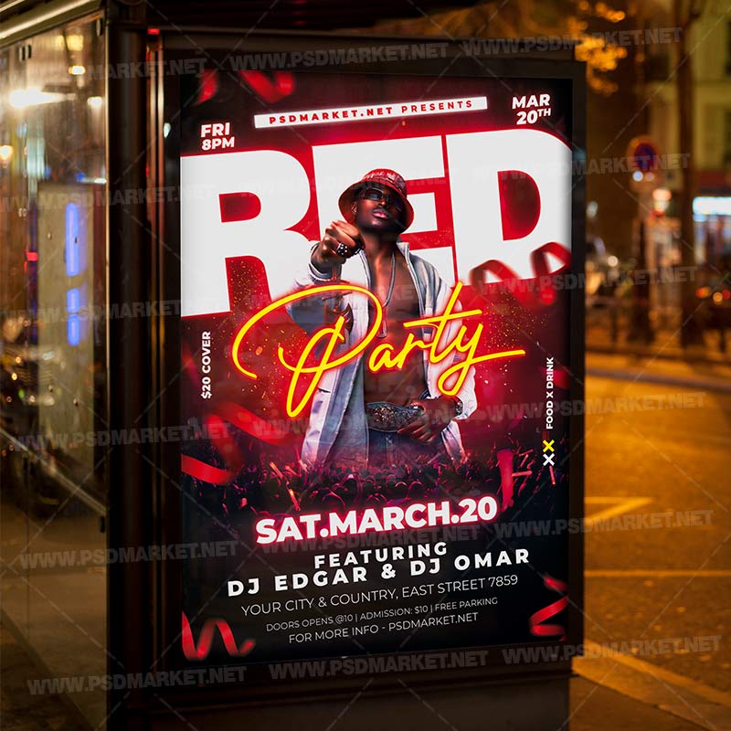 Red Party PSD Template Flyer is a simply modern flyer design by PSDmarket Team to be used with Adobe Photoshop CS3 and higher. Save your time and use it for business or for your clients! This can be use for Red Fridays, Red Carpet, Red Show, Red Dj Party, Red Guest Dj, Red Guest, Night Party, Red Party, Music Club, Red Night, Party Friday, World Party Day, Dj Sound, Dj Club Event, Dj Party, Dj Night, Dj Club Party, Club Party, Online Party, Online Stream Party, Live Party, House Party, Home Night, Party Night, Rave Club Party, Rave Dj, Dj Battle and others.