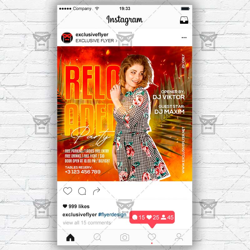 Reloaded Night Template an exclusive PSD flyer template for Adobe Photoshop designed by our best graphic designers to facilitate your task in promoting your business. With our readymade Club flyer in psd format you can invite you customers and guest to your event or to the best Party Club, Girls Night, Party Online, Girls Night Out Party, Live Show Night, Online Show. Online Dj Battle, Online Party On in their lives.