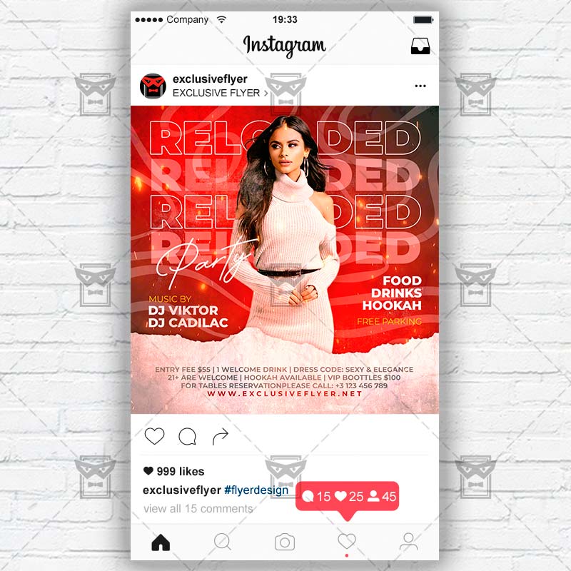 Reloaded Party Template an exclusive PSD flyer template for Adobe Photoshop designed by our best graphic designers to facilitate your task in promoting your business. With our readymade Club flyer in psd format you can invite you customers and guest to your event or to the best Party Club, Girls Night, Party Online, Girls Night Out Party, Live Show Night, Online Show. Online Dj Battle, Online Party On in their lives.