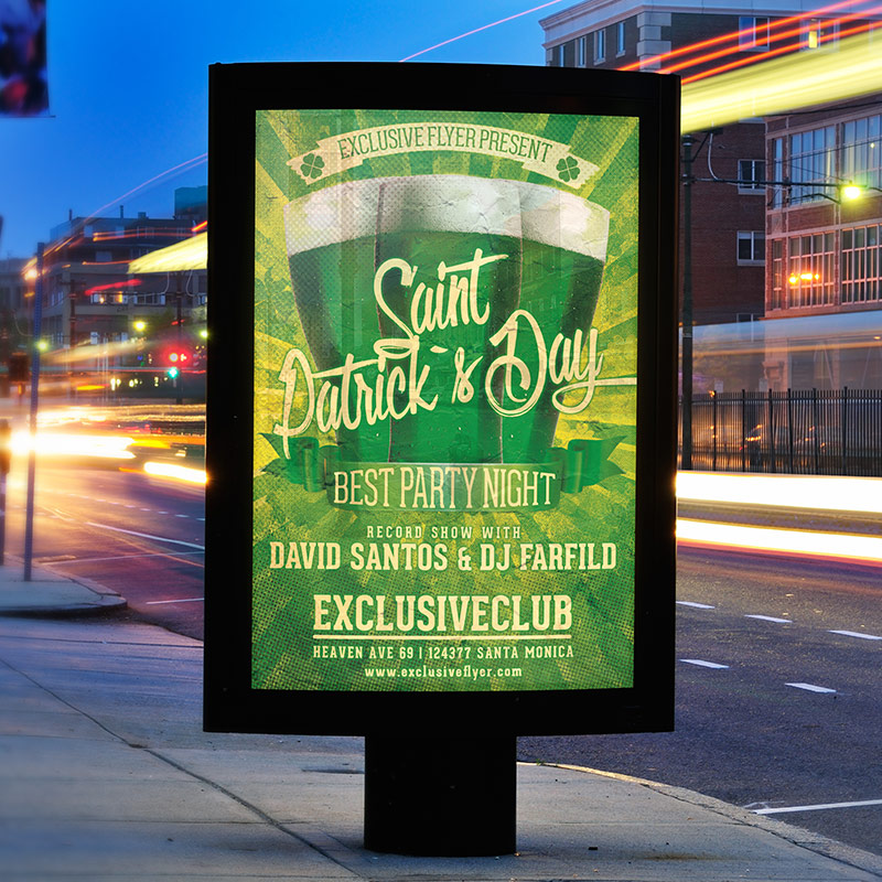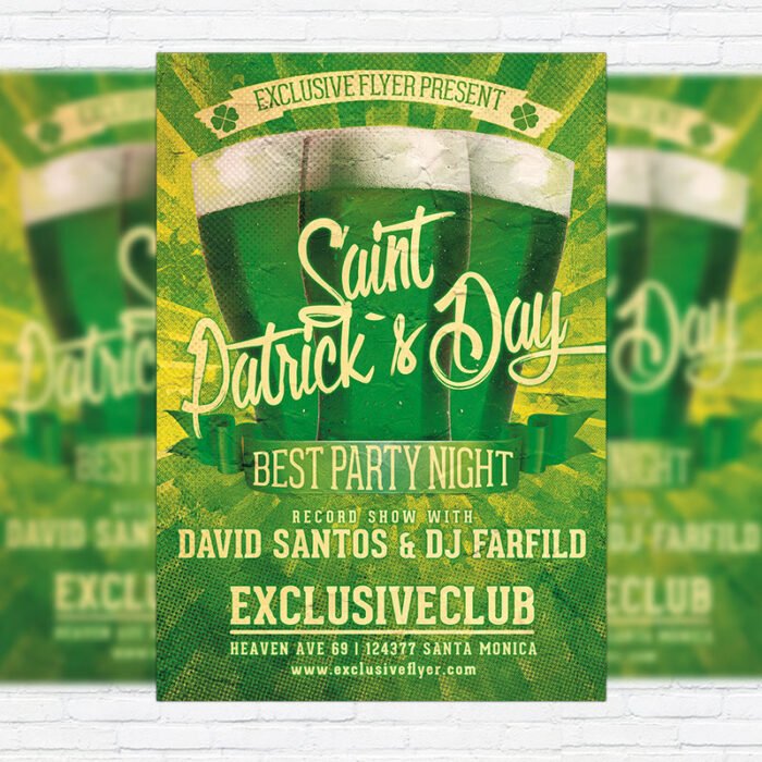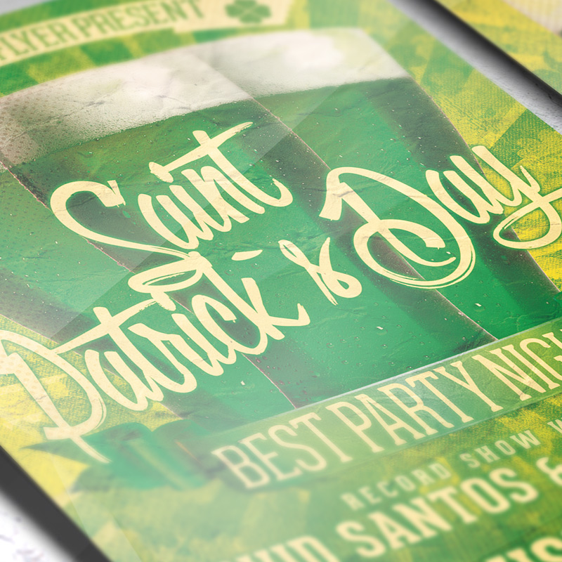 The Retro St. Patrick’s Day is the exclusive Photoshop PSD flyer template designed by ExclusiveFlyer to promote your Retro St. Patrick’s Day. This is a modern, stylish, green flyer and just be used for a Green Party or maybe Patrick’s Night. Dear customers! – you can also: Customize any flyers or Hire Us to create any unique product. Also, you can get unlimited access to all our templates. You can buy 1 month membership, 3 or 6 months membership or even 1 year membership plan and login on site, choose a design, click the button DOWNLOAD TEMPLATE and it’s yours. No hassle, no checkout! When you paid the template, you can find it in your personal account and of course you’ve got a message to your e-mail (maybe in spam) with link to download. Also, you can find all templates, which you buy, in your personal account! All of our flyers have a very good quality (300DPI). And it means that you just need to download one of them and make the necessary modifications such as replace the elements or choose the colors and start to invite your guests! You can order from us design of Banner Ad, Bi-Fold Brochure, Tri-Fold Brochure, Business Card, Logo, One-Sided Flyer, Two-sided Flyer or Postcard. All you need is to checkout and write us all information on our e-mail or skype. (order now). There are a lot of free flyer templates, free business card templates on our site! Also there are a lot of categories of flyers such as club flyers, seasonal flyers, sport flyers and also business flyers. You have a great choise on our site, so good luck! Don’t forget to follow our Facebook community, our page on Twitter, on Pinterest and on Tumblr and leave comments, cause we work for you! PSD is set up in 1275×1875 dimension (4″×6″ with 0,25″ bleed). The PSD file is very well organised, with color coded groups and layers named appropriately. Remember, all stock images of models and other people used only for demonstration all charms of the flyer and don’t included in the download!