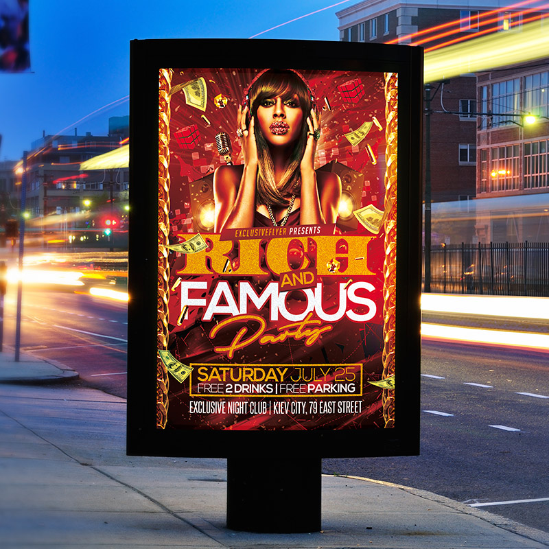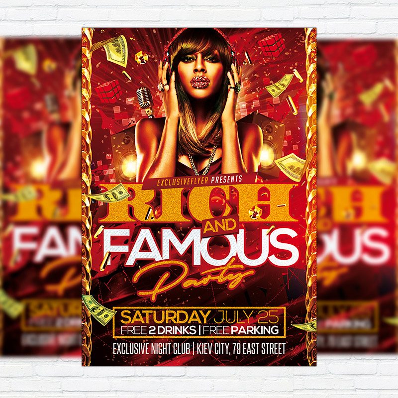 Rich and Famous Party – Premium Flyer Template + Facebook Cover