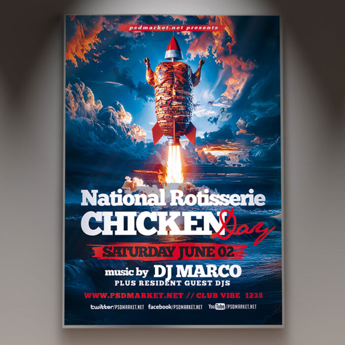 Rotisserie Chicken Day 2026 Flyer TemplateGet ready to mark your calendars for a delicious celebration in the coming year with our sizzling Rotisserie Chicken Day 2026 Flyer Template! This mouth-watering design is absolutely perfect for promoting any event celebrating the beloved rotisserie chicken specifically slated for 2026 – be it an annual restaurant promotion, a supermarket deli’s yearly deal, a community food festival, or even a large-scale backyard cookout with a rotisserie focus. If you’re looking to highlight the crispy skin, juicy meat, and irresistible aroma of perfectly roasted chicken for your future event, this flyer template is engineered to make stomachs rumble and draw a crowd well in advance. Expect to see vibrant visuals, perhaps featuring golden-brown rotisserie chickens, tantalizing steam, or classic spit-roasting equipment, combined with appetizing typography and warm, inviting color schemes that evoke the deliciousness of a freshly cooked meal, all with a prominent “2026” to set the date. This template is all about broadcasting the deliciousness and making your “Rotisserie Chicken Day 2026” event a culinary highlight of the year! The Rotisserie Chicken Day 2026 Flyer Template offers a highly adaptable and enticing layout, ensuring you can clearly communicate all the essential details of your 2026 event while perfectly maintaining its delicious and inviting spirit. You can easily customize the text fields to include the specific date and time of your Rotisserie Chicken Day celebration in 2026, the exact location (your restaurant, store, or event space), information about special pricing, bundles, or meal deals presented in a clear and appealing way, a mouth-watering description of what attendees can expect (perhaps mentioning special seasoning, sides, or cooking methods), specific details about any unique features like live carving stations, chef demos, or family meal packages planned for 2026, and clear contact information or ordering instructions for hungry customers. Many templates also provide exciting options to incorporate additional appetizing graphics like fresh herbs, side dishes, or happy customers enjoying their meal, or to adjust the warm color palette to perfectly match your brand’s aesthetic or the event’s specific theme, allowing you to create a truly unique and memorable promotional piece that looks as delicious as it tastes for 2026. Engineered for maximum reach, the Rotisserie Chicken Day 2026 Flyer Template is designed to be both print-ready for stunning physical distribution and easily optimized for seamless digital sharing. This ensures your delicious invitation reaches a wide and hungry audience well before and during 2026. Create eye-catching physical flyers to post in grocery stores, local community boards, or restaurant windows. Effortlessly share the flyer digitally through various social media channels with engaging captions that highlight the irresistible aroma and flavor, email announcements that make mouths water, and online event listings that tempt foodies. This dual functionality helps to maximize visibility and create significant buzz around your Rotisserie Chicken Day 2026 event. By utilizing this distinctive and attention-grabbing flyer template, you’re not just announcing a promotion; you’re creating an invitation that broadcasts pure culinary delight and promises an experience that brings the savory joy of rotisserie chicken to life, making your “Rotisserie Chicken Day 2026” an unmissable feast. Grab this template today and prepare to roast up some serious business for the coming year! — Features of the Rotisserie Chicken Day 2026 Flyer Template