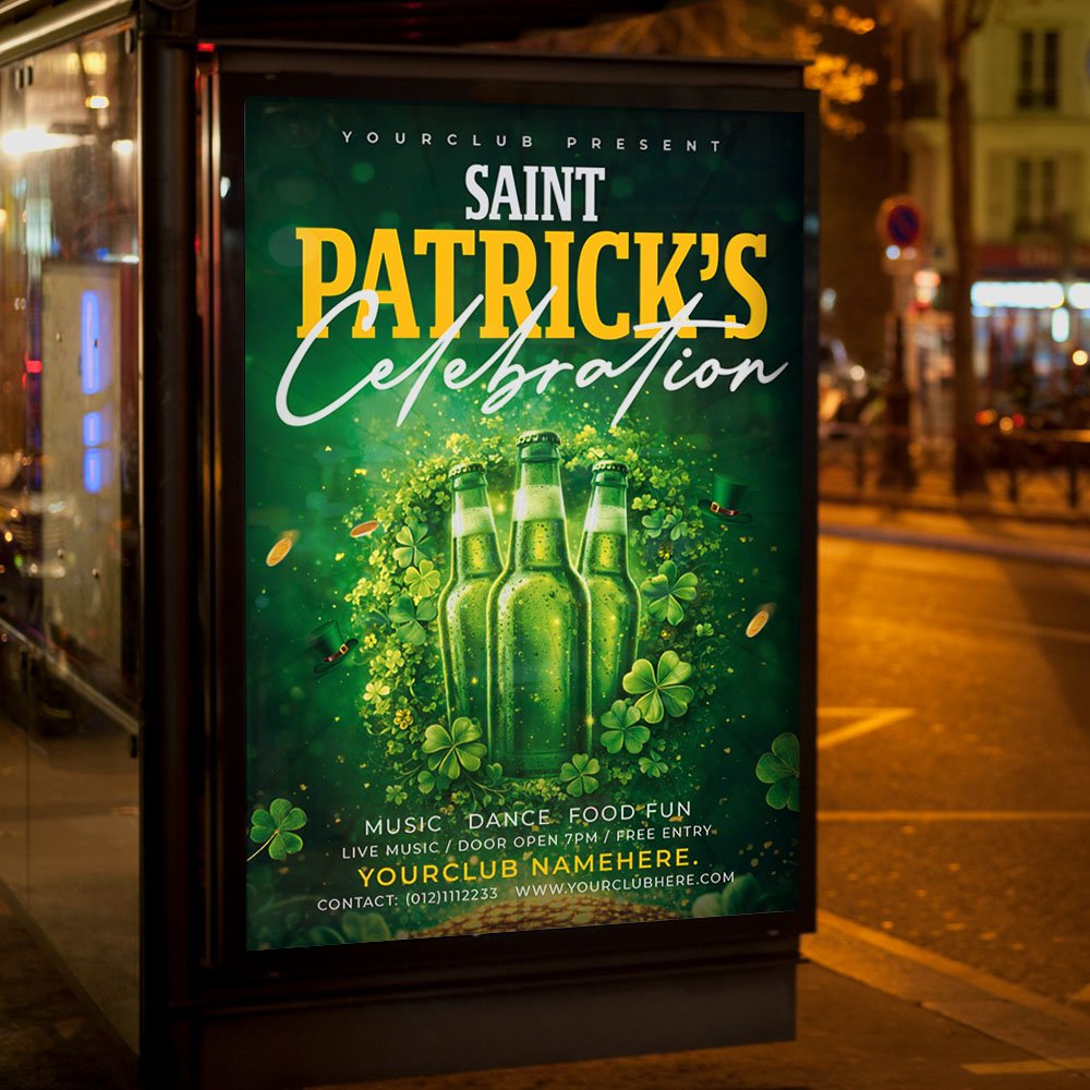 Saint Patrick Day PSD Flyer TemplateUnleash the spirit of the Emerald Isle with our premium Saint Patrick Day PSD Flyer Template. As March 2026 approaches, the competition for the best St. Paddy’s event is heating up. Whether you are managing a traditional Irish pub, a modern nightclub, or a city-wide festival, this professional Photoshop template is your secret weapon for a packed house. Featuring vibrant 3D shamrocks, cinematic green neon accents, and a classic “Pot of Gold” aesthetic, it perfectly captures the high-energy, lucky vibe that every 2026 party-goer is searching for. The Saint Patrick Day PSD Flyer Template is a masterpiece of professional versatility. This fully layered and meticulously organized PSD file allows you to customize every detail to fit your venue’s unique brand. Within minutes, you can update text layers for your headlining DJs, live folk bands, or special guest appearances. Use the integrated smart objects to highlight 2026-specific promotions like “Green Beer” happy hours, VIP Irish Whiskey tastings, interactive leprechaun photo booths, or early-bird ticket links. The high-resolution structure ensures that every element—from the wood-grain textures to the golden sparkles—remains crisp and high-gloss on any medium. Built for the digital-heavy marketing world of 2026, this template is 100% print-ready and expertly optimized for social media dominance. Easily export versions for Instagram Stories, TikTok promos, and Facebook events to ensure your “Saint Patrick’s Day 2026” celebration goes viral. By choosing this distinctive and professional design, you aren’t just distributing a flyer; you’re creating a premium brand for the biggest Irish celebration of the year. Download the Saint Patrick Day PSD Flyer Template today and make your event a legendary success! — Features of the Saint Patrick Day PSD Flyer Template