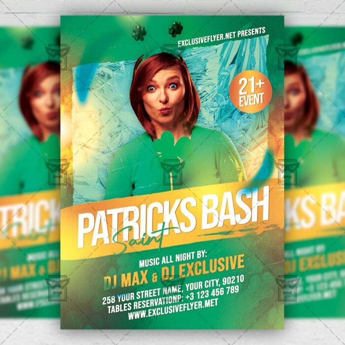 Saint Patricks Bash Template an exclusive PSD flyer template for Adobe Photoshop designed by our best graphic designers to facilitate your task in promoting your business. This psd poster/flyer is the best choice for Patrick’s Day party, Saint Paddy’s Green Night, Green Night Out or Saint Patrick’s Celebration Party. With our readymade Game flyer in psd format you can invite you customers and guest to your event with a minimum of efforts and time.