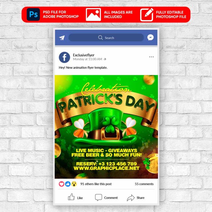 Saint Patricks Day Celebration Social Media Video Template is great to promote your party, night club, festival, music show, karaoke bar, restaurant, sport bar, beer pub etc. You are welcome to download or buy any Video Flyer Template in PSD from GraphicPlace.net and become really successful! It is your exclusive chance to save your time and a lot of money, just use our ready-made PSD Video Flyers for promoting your events on Facebook with facebook covers, on Instagram or any other social network with square size videos!