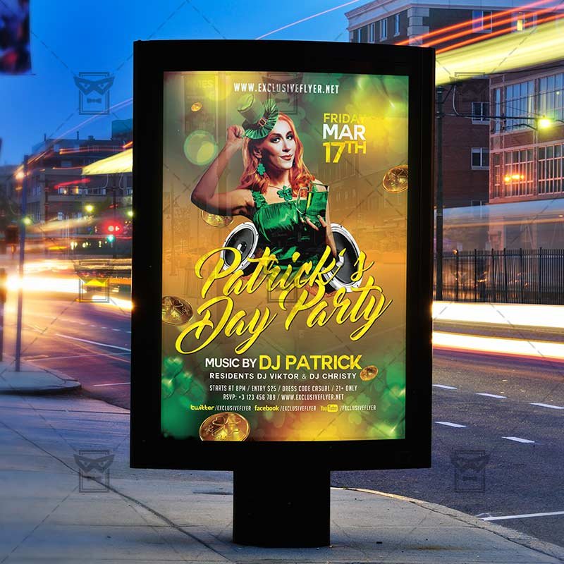 Saint Patrick’s Day is an exclusive PSD flyer template for Adobe Photoshop designed by our best graphic designers to facilitate your task in promoting your business. With our readymade Saint Patrick’s Day flyer in psd format you can invite you customers and guest to your event or to the best St. Patrick’s Night Celebration or Lucky Charm Party in their lives.