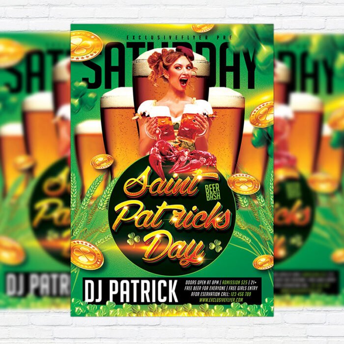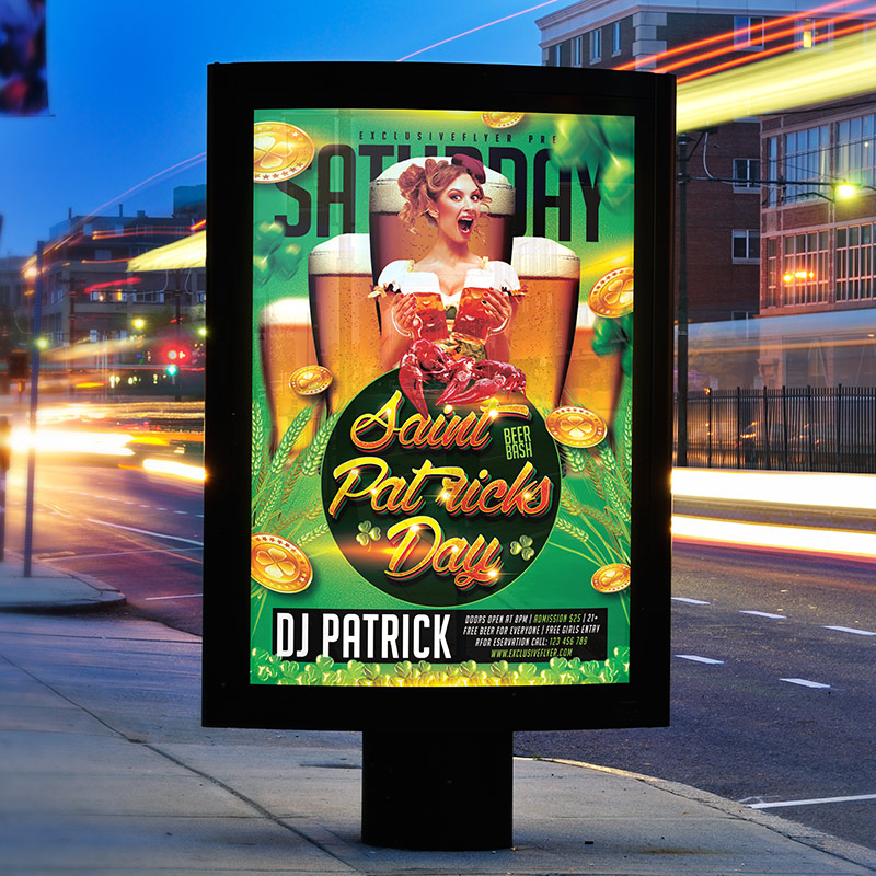 The Saint Patricks Day is the exclusive Photoshop PSD flyer template designed by ExclusiveFlyer to promote your Saint Patricks Day. This is a modern, stylish flyer and just be used for a Patricks Party or Lucky Charm etc. Dear customers! – you can also: Customize any flyers or Hire Us to create any unique product. Also, you can get unlimited access to all our templates. You can buy 1 month membership, 3 or 6 months membership or even 1 year membership plan and login on site, choose a design, click the button DOWNLOAD TEMPLATE and it’s yours. No hassle, no checkout! When you paid the template, you can find it in your personal account and of course you’ve got a message to your e-mail (maybe in spam) with link to download. Also, you can find all templates, which you buy, in your personal account! All of our flyers have a very good quality (300DPI). And it means that you just need to download one of them and make the necessary modifications such as replace the elements or choose the colors and start to invite your guests! You can order from us design of Banner Ad, Bi-Fold Brochure, Tri-Fold Brochure, Business Card, Logo, One-Sided Flyer, Two-sided Flyer or Postcard. All you need is to checkout and write us all information on our e-mail or skype. (order now). There are a lot of free flyer templates, free business card templates on our site! Also there are a lot of categories of flyers such as club flyers, seasonal flyers, sport flyers and also business flyers. You have a great choise on our site, so good luck! Don’t forget to follow our Facebook community, our page on Twitter, on Pinterest and on Tumblr and leave comments, cause we work for you! PSD is set up in 1275×1875 dimension (4” x 6” with 0,25” bleed). The PSD file is very well organised, with color coded groups and layers named appropriately. Remember, all stock images of models and other people used only for demonstration all charms of the flyer and don’t included in the download!