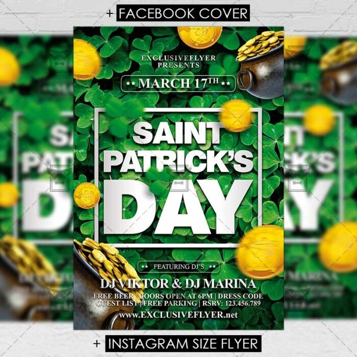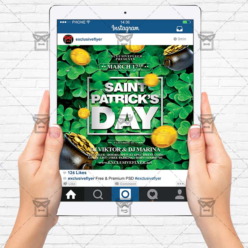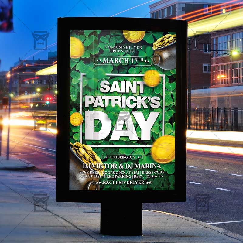 The Saint Patricks Day is the exclusive Photoshop PSD flyer template designed by ExclusiveFlyer to promote your Saint Patricks Day Party. This is a modern, stylish flyer and just be used for a Saint Patricks Day Night, Green Beer Night, St. Paddy Night, Partick’s Day Beer Show etc. Dear customers! – you can also: Customize any flyers or Hire Us to create any unique product. Also, you can get unlimited access to all our templates. You can buy 1 month membership, 3 or 6 months membership or even 1 year membership plan and login on site, choose a design, click the button DOWNLOAD TEMPLATE and it’s yours. No hassle, no checkout! When you paid the template, you can find it in your personal account and of course you’ve got a message to your e-mail (maybe in spam) with link to download. Also, you can find all templates, which you buy, in your personal account! All of our flyers have a very good quality (300DPI). And it means that you just need to download one of them and make the necessary modifications such as replace the elements or choose the colors and start to invite your guests! You can order from us design of Banner Ad, Bi-Fold Brochure, Tri-Fold Brochure, Business Card, Logo, One-Sided Flyer, Two-sided Flyer or Postcard. All you need is to checkout and write us all information on our e-mail or skype. (order now). There are a lot of free flyer templates, free business card templates on our site! Also there are a lot of categories of flyers such as club flyers, seasonal flyers, sport flyers and also business flyers. You have a great choise on our site, so good luck! Don’t forget to follow our Facebook community, our page on Twitter, on Pinterest and on Tumblr and leave comments, cause we work for you! PSD is set up in 1275×1875 dimension (4” x 6” with 0,25” bleed). The PSD file is very well organised, with color coded groups and layers named appropriately. Remember, all stock images of models and other people used only for demonstration all charms of the flyer and don’t included in the download!