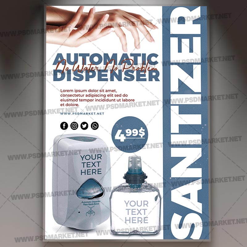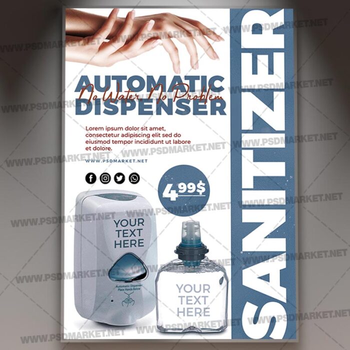 Sanitizer Dispenser Template Flyer PSD is a simply modern flyer design by PSDmarket Team to be used with Photoshop CS3 and higher. Save your time and use it for business or for your clients! This can be use for Sanitizer Dispenser, Sanitizer Dispenser Template, Automatic Hand Sanitizer Dispenser, Hand Santizier, Hand Sanitizer Dispenser, Together at home, Sanitizer Spray, hand Sanitizer Spray, Spray Bottle, Natural Hand Sanitizer Spray and others.