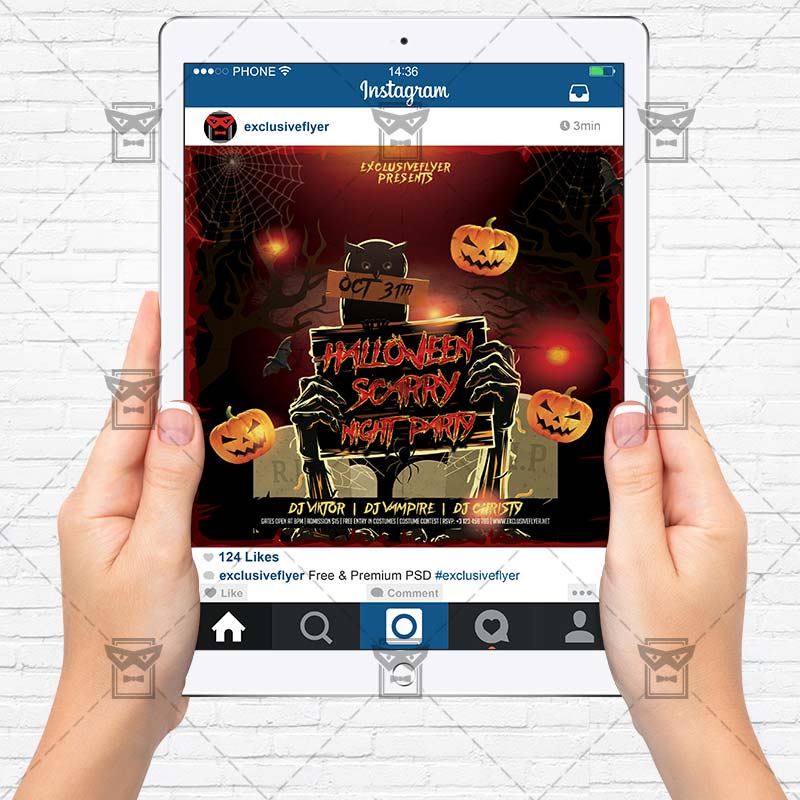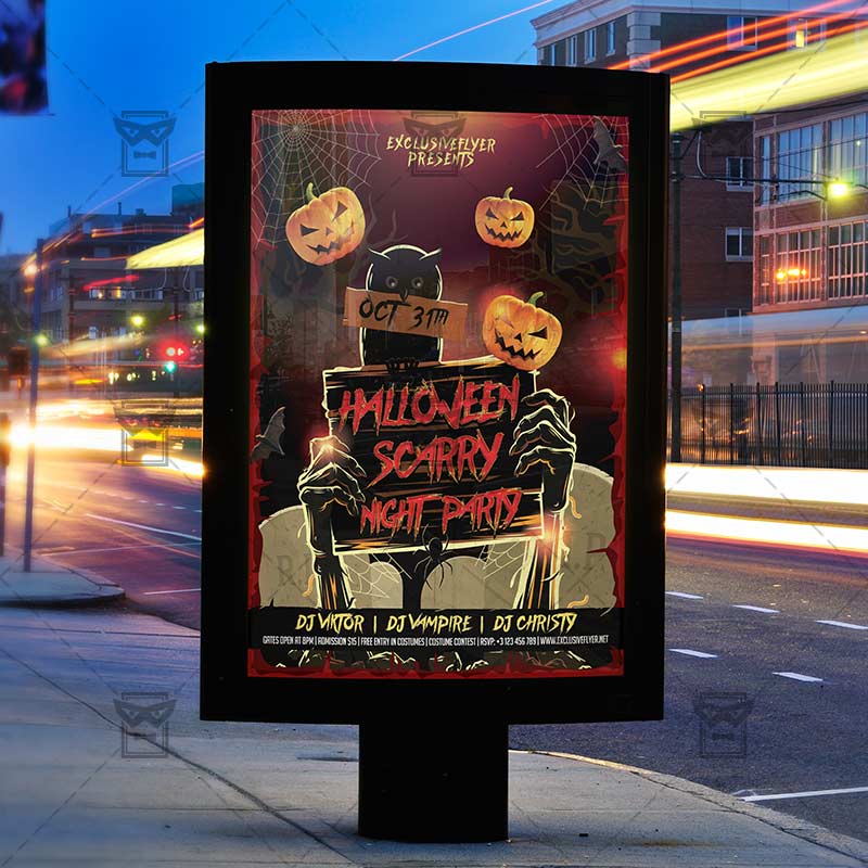 The Scarry Halloween is the exclusive Photoshop PSD flyer template designed by ExclusiveFlyer to promote your Scarry Halloween Night. This is a modern, stylish flyer and just be used for Halloween Night, Trick or Trit Party, Scarry Party, Bloody Night etc.